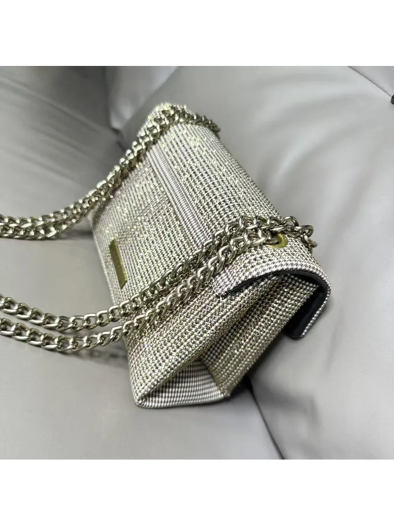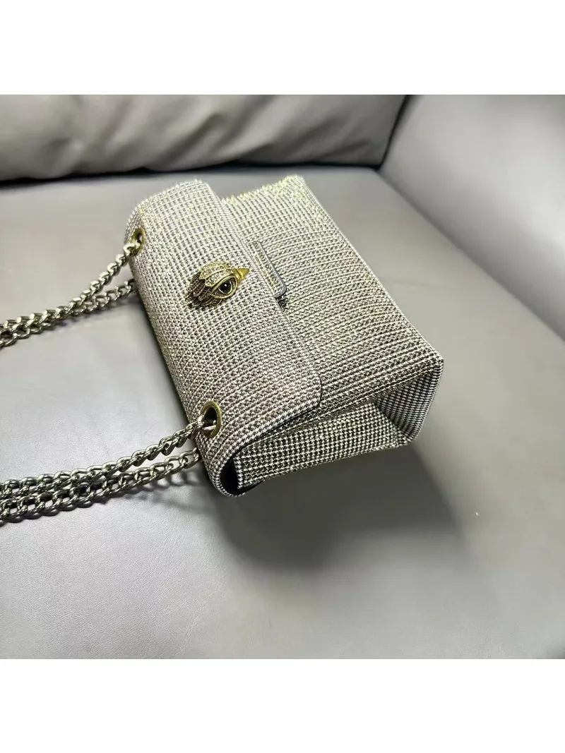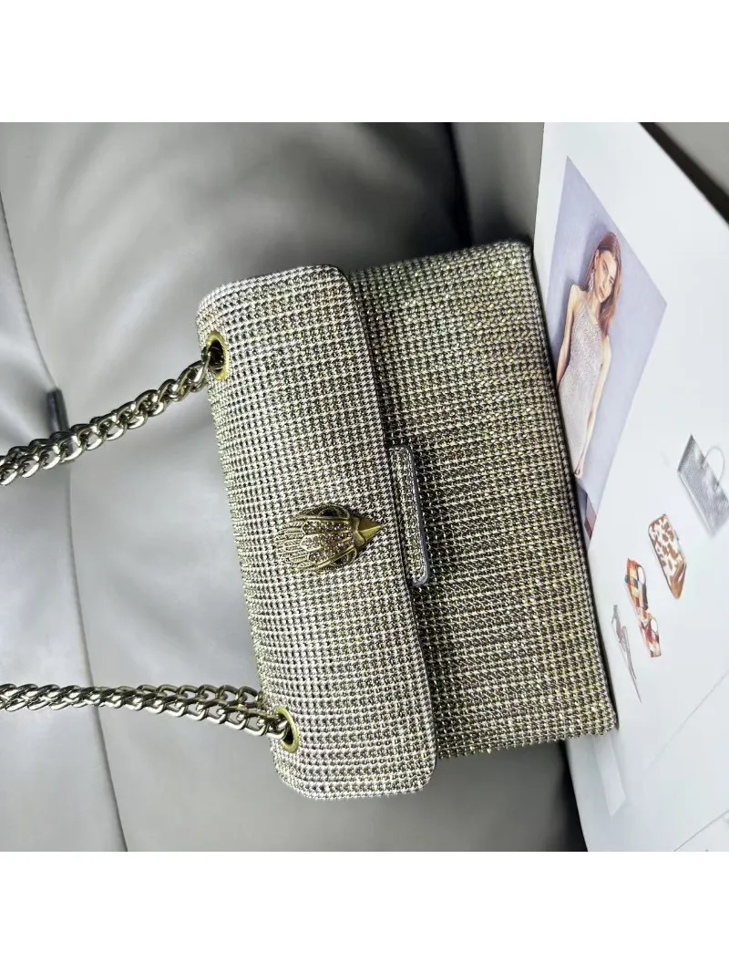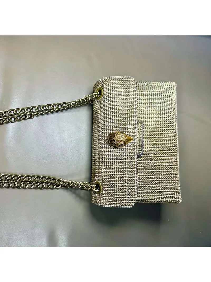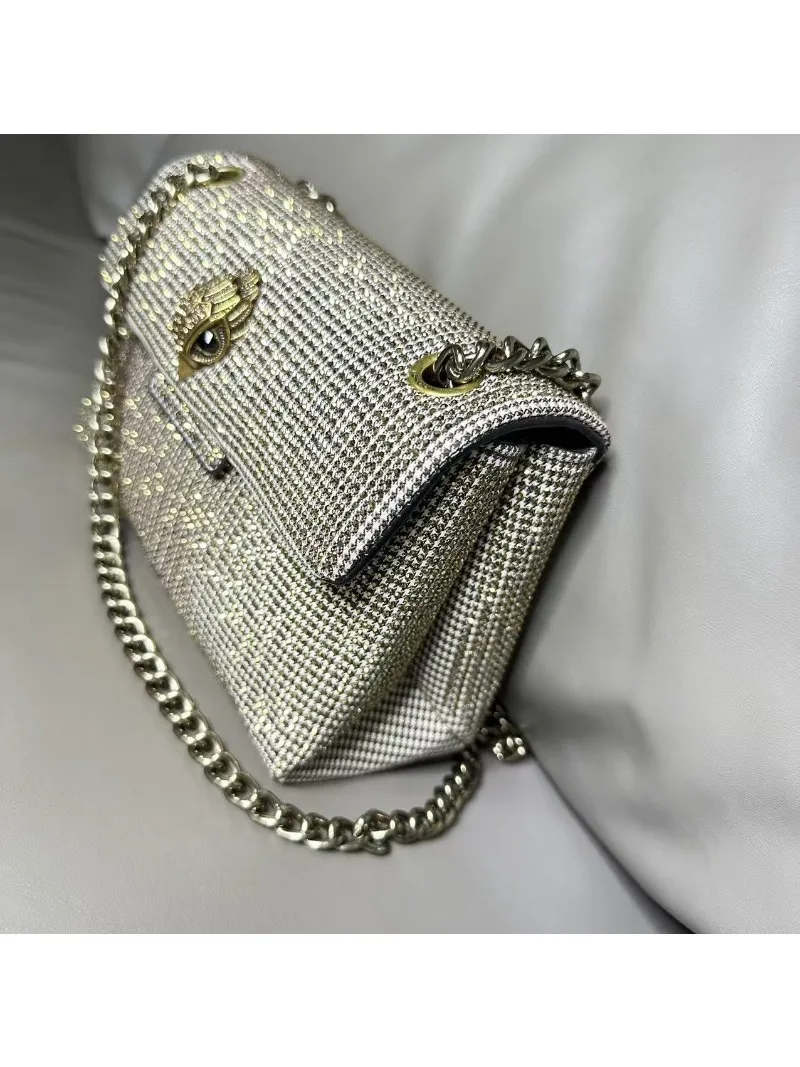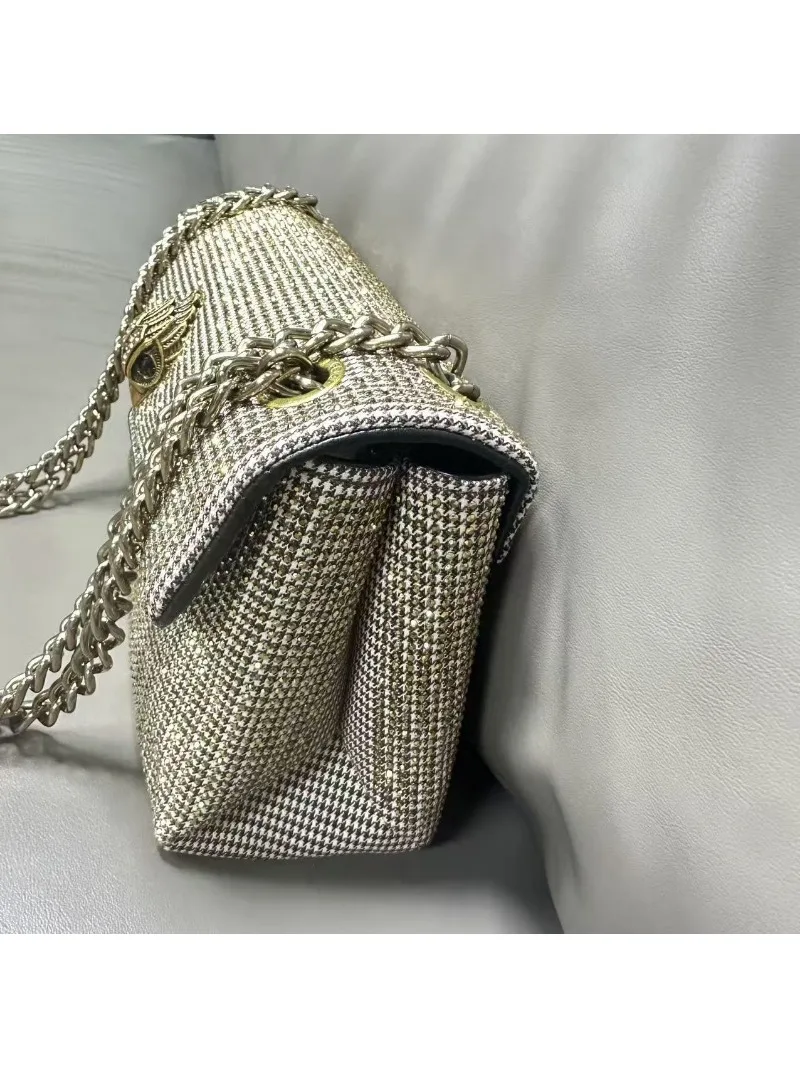 New Kg Model of British Trench Pattern Bag with Rhinestone Accents, Single Shoulder Crossbody Bag with Eagle Head Chain Strap