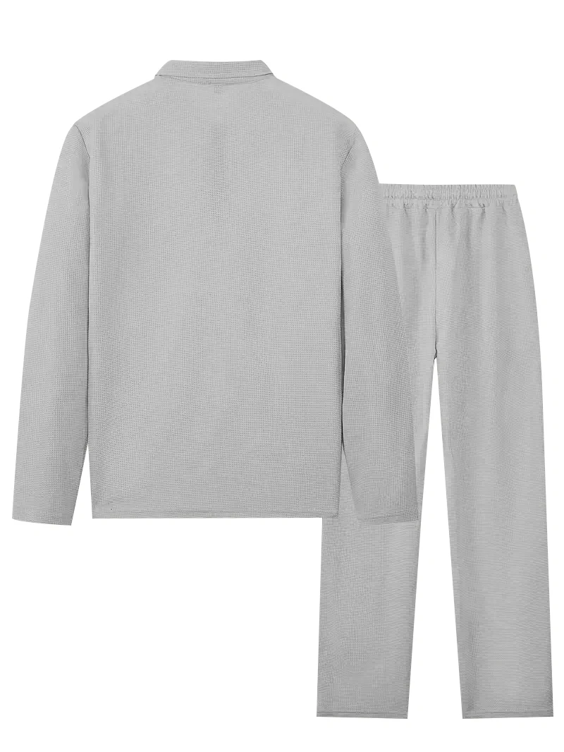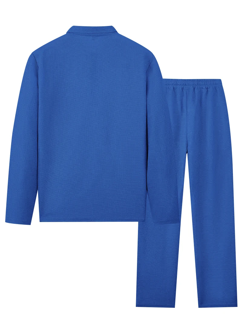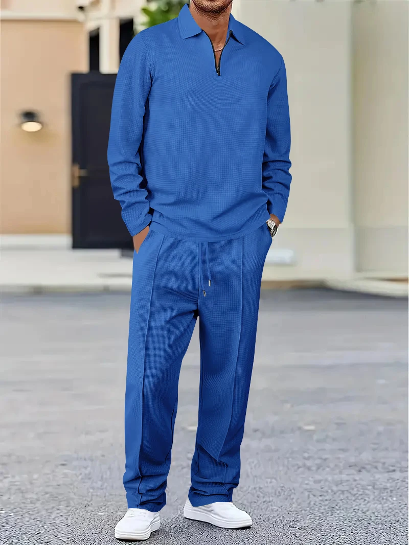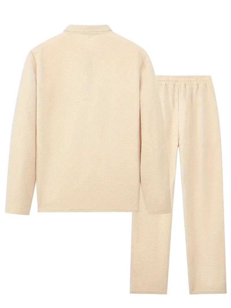 New Spring And Autumn Fashion Men's Solid Color Waffle Leisure Suit, Lapel Multi-Functional Loose Sportswear Men's Leisure Suit
