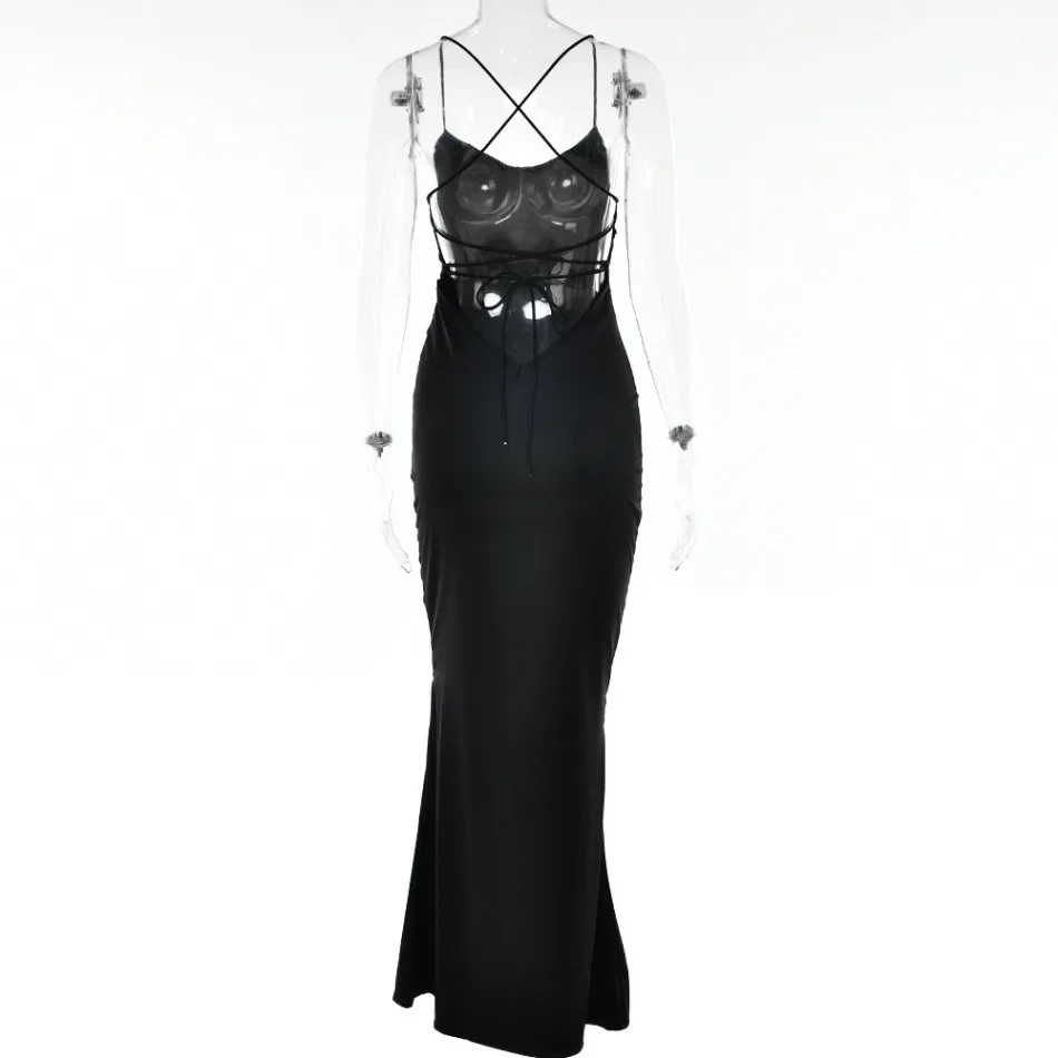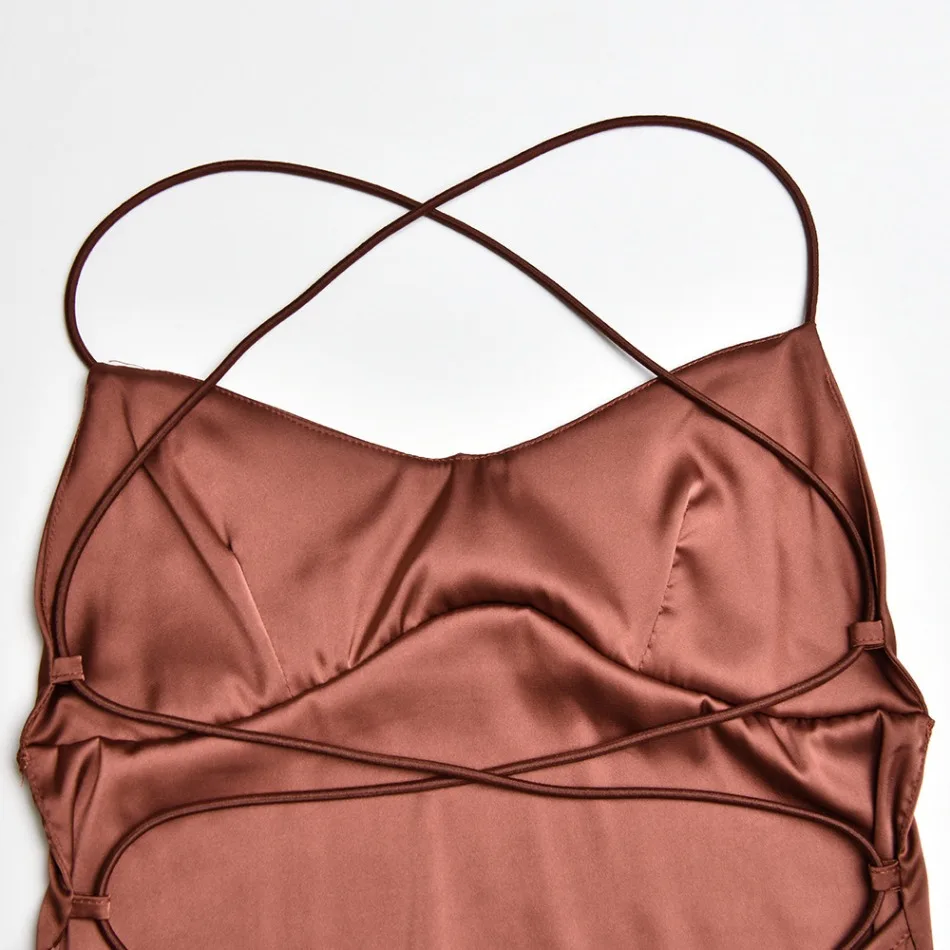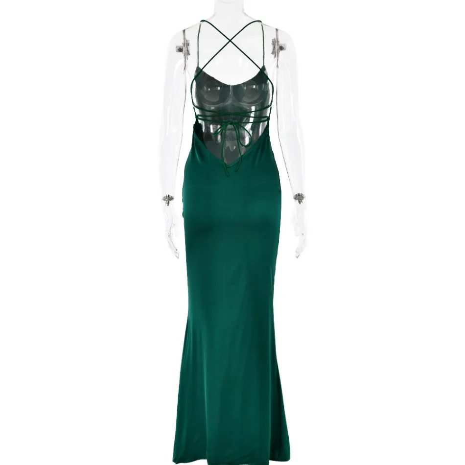 New Summer Satin Backless Lace Up Mermaid Slip Dress Women Sweetheart Neck Sexy Slim Bodycon Dresses Elegant Silk Gown Partywear