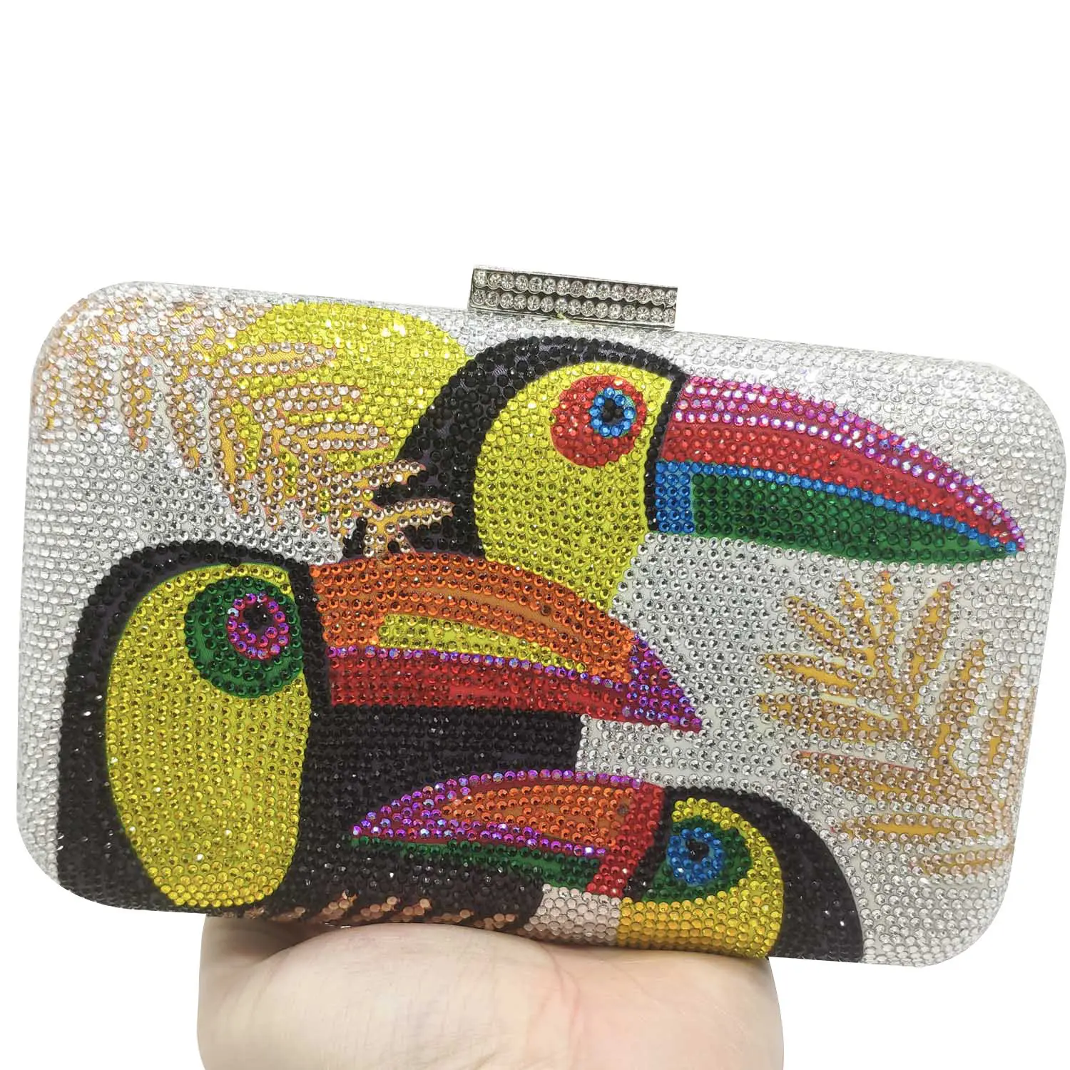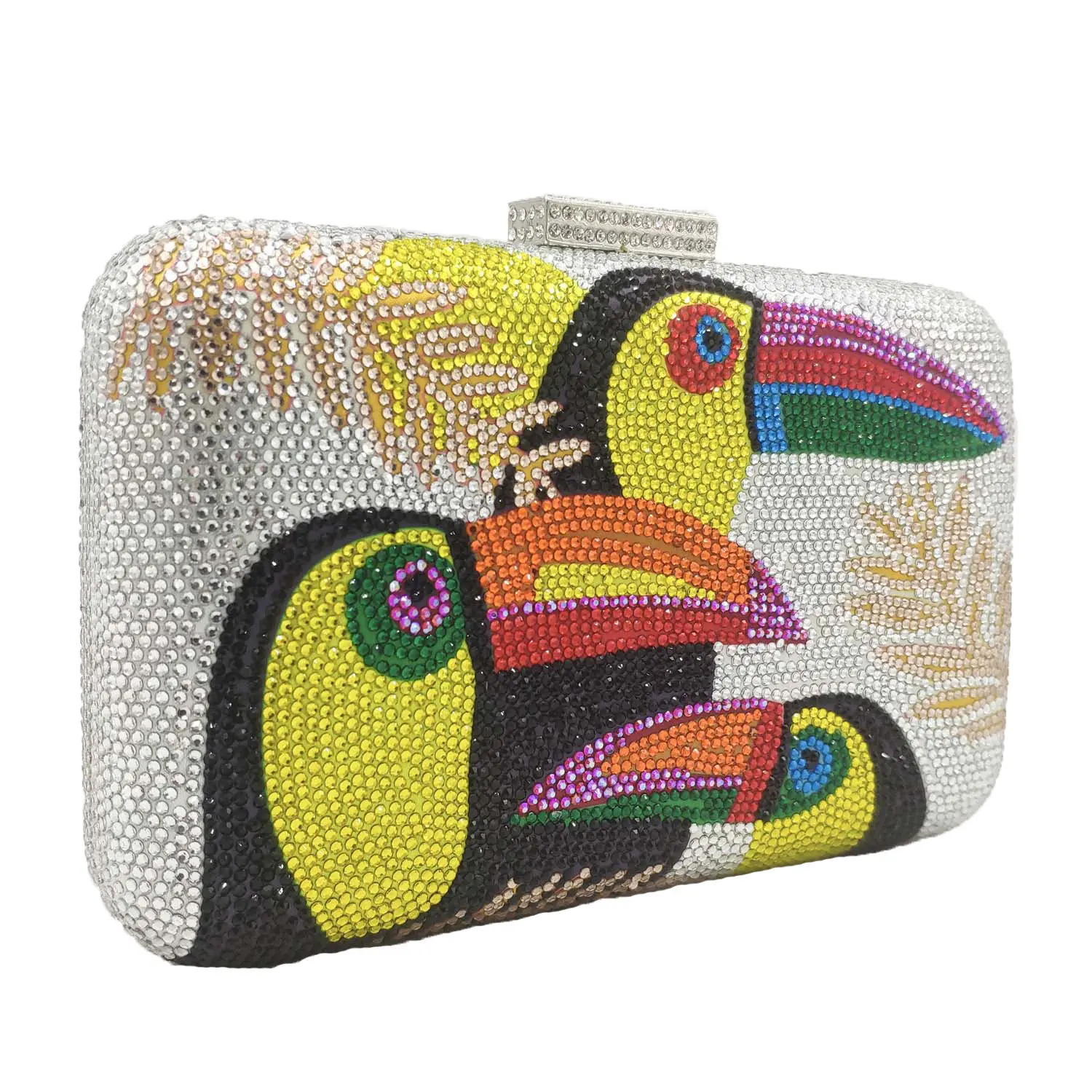 Novelty Toucan Bird Women Crystal Evening Bags Rhinestones Box Minaudiere Clutch Party Cocktail Handbag Diamond Chain Purse