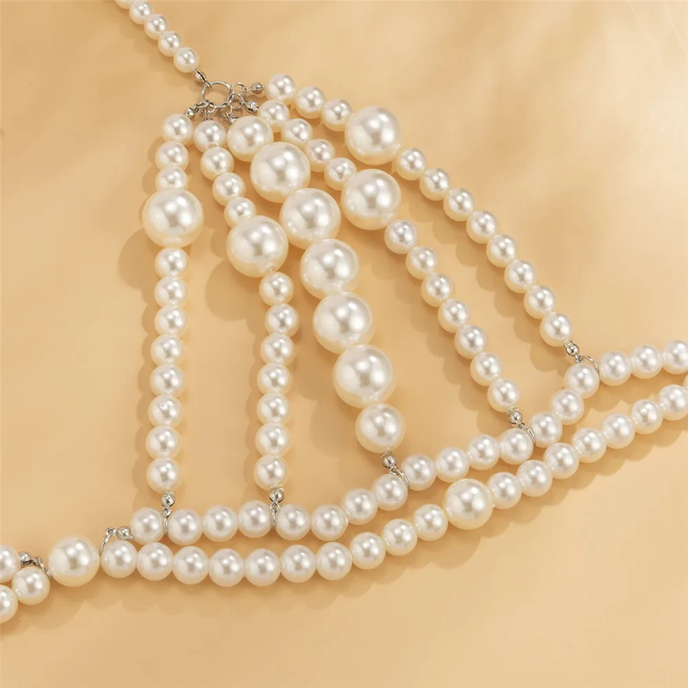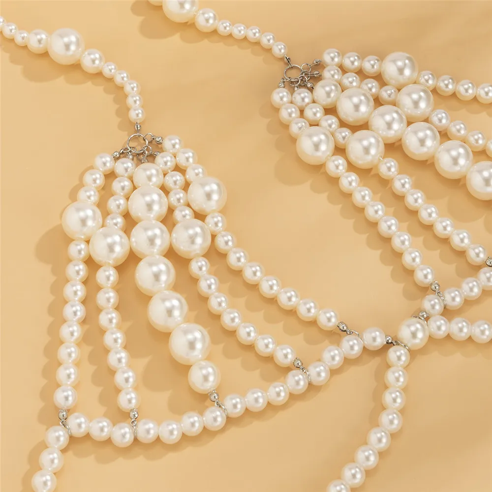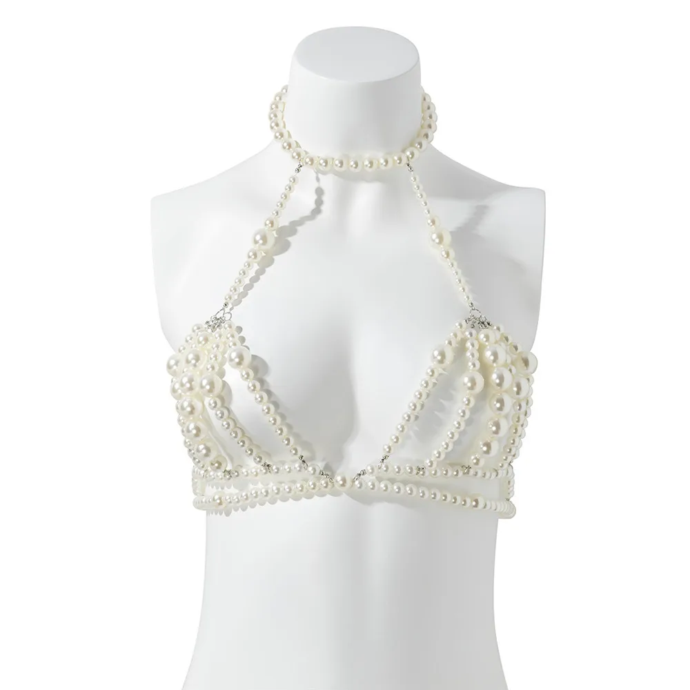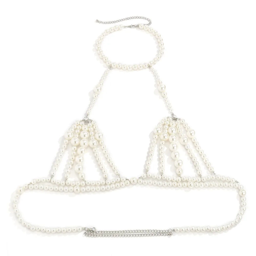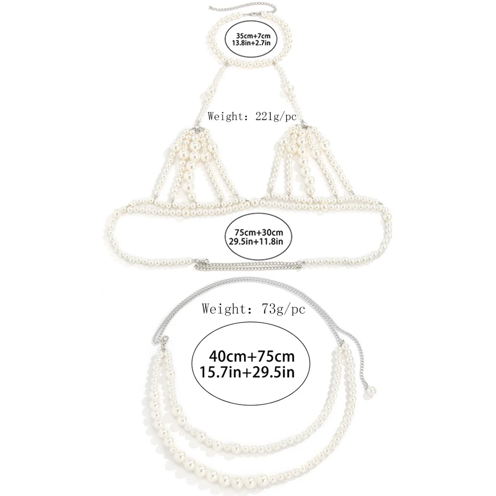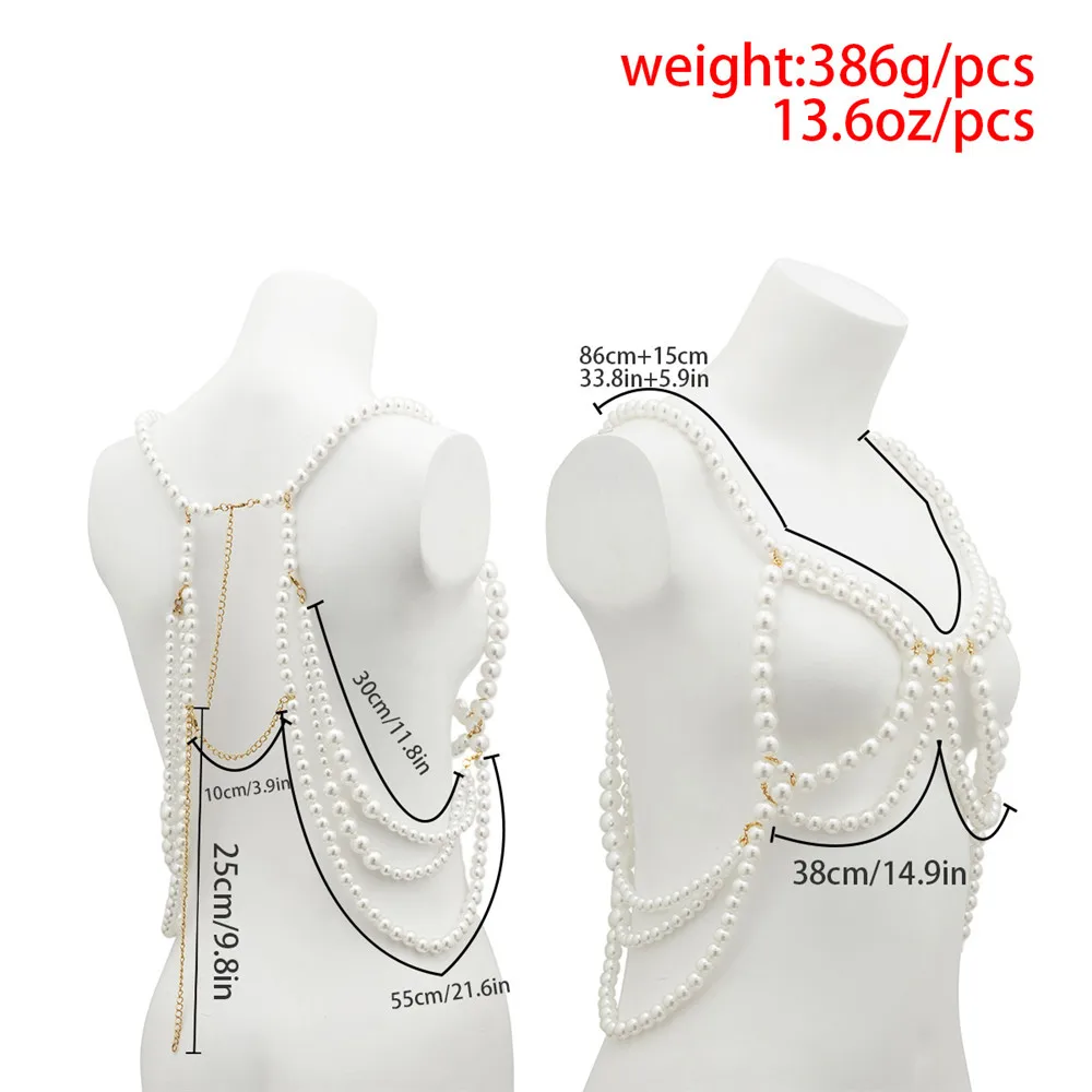 Pearl Sexy Imitation Pearl Bra Bralette Body Chain for Female Fashion Sweet Geometric Waist Chain Body Accessories 90s Aesthetic