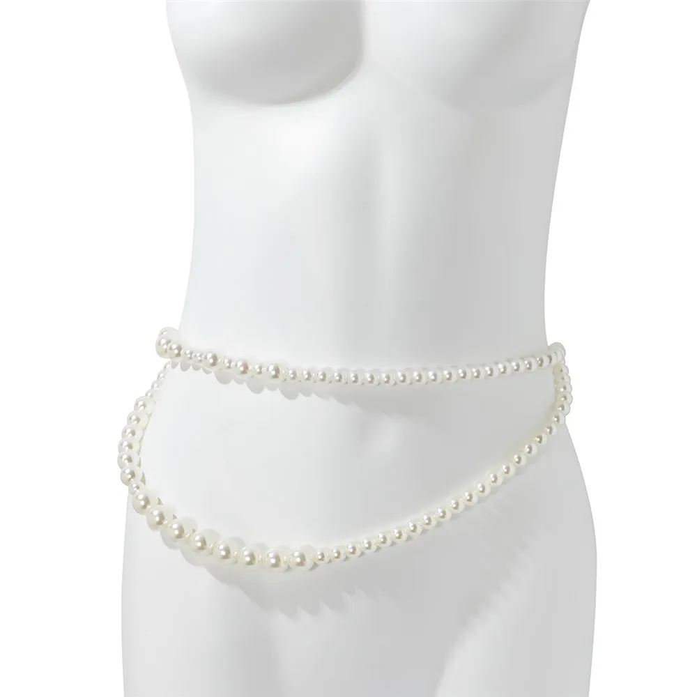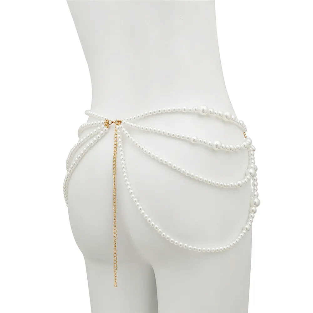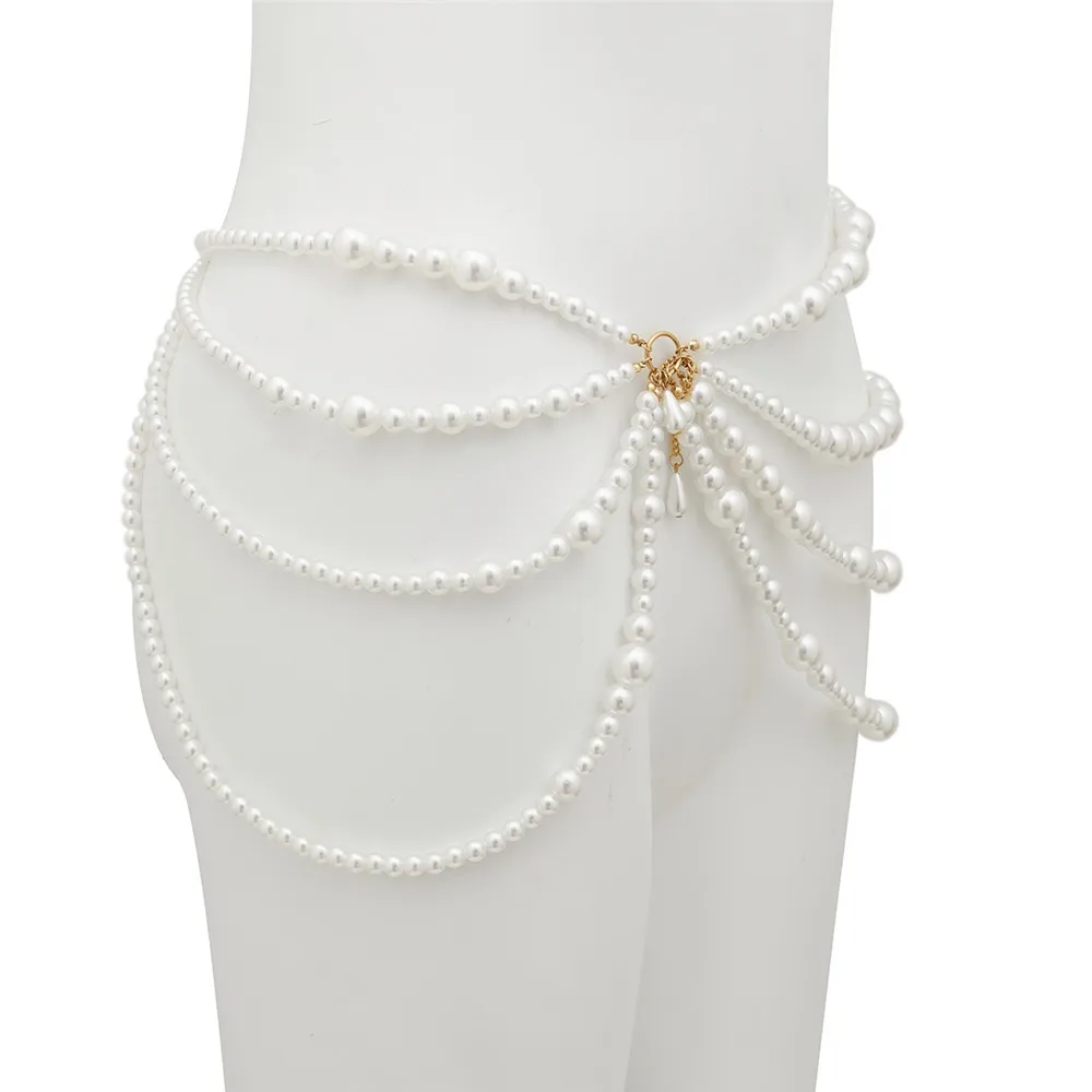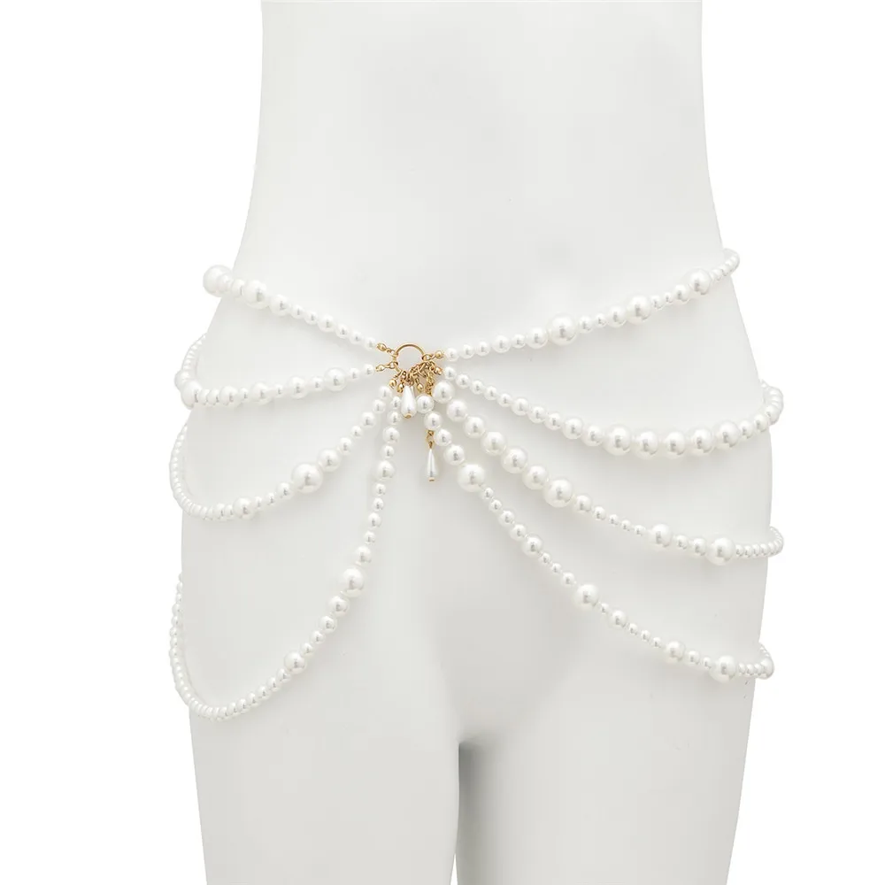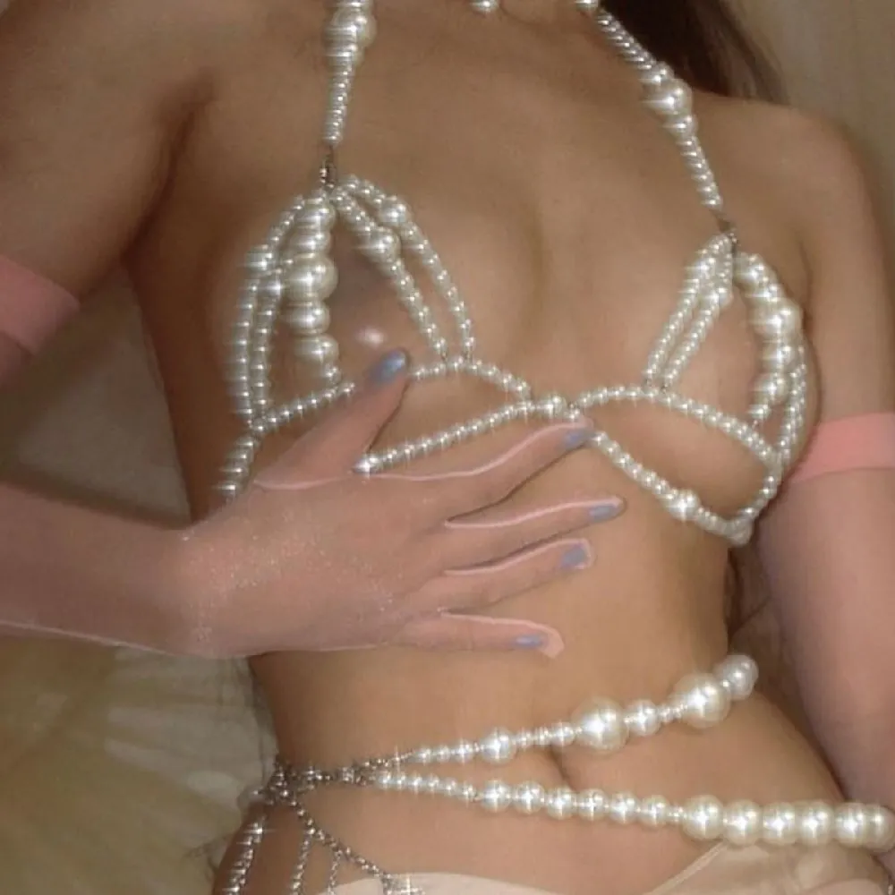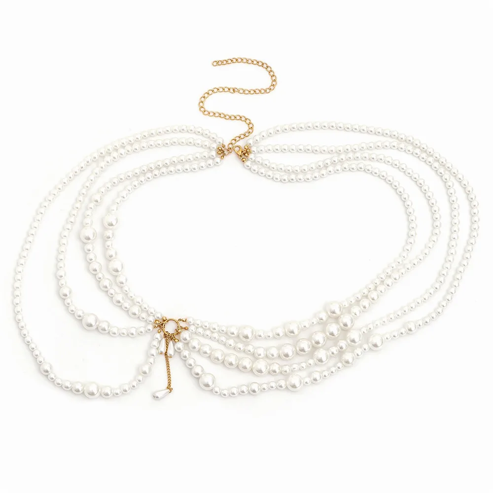 Pearl Sexy Imitation Pearl Bra Bralette Body Chain for Female Fashion Sweet Geometric Waist Chain Body Accessories 90s Aesthetic