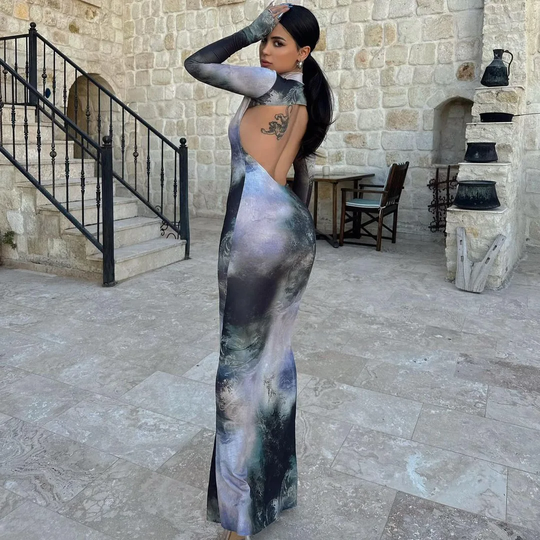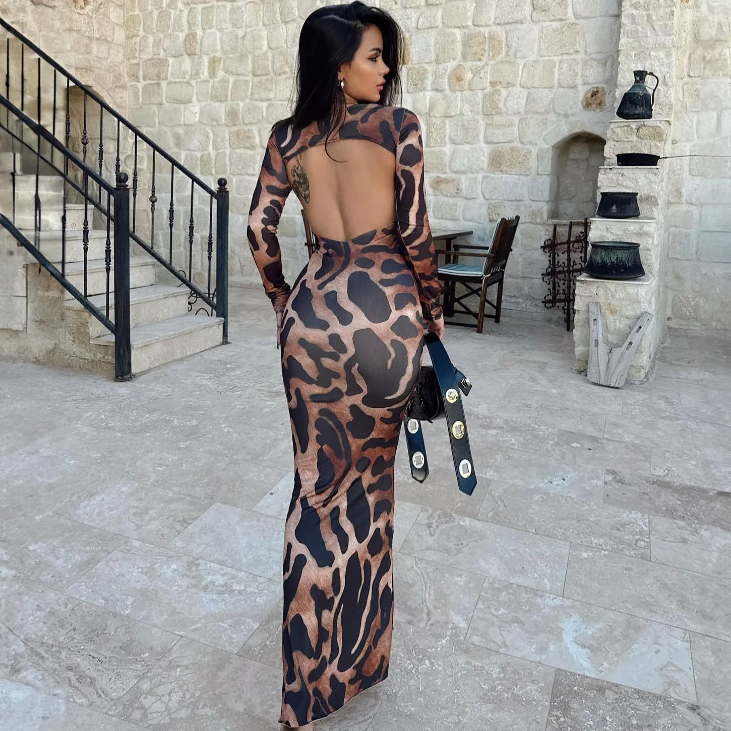 Phantasy Women's Print Leopard Print Slim Long Dress Backless Sexy Package Hip Bodycon Lady Party Night Dress 2025 Summer