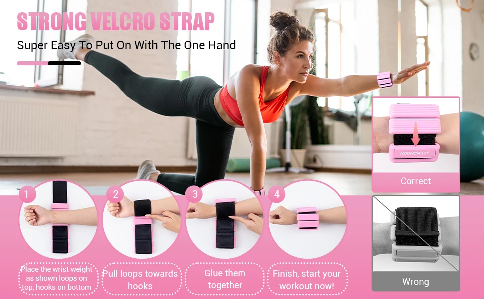 CORRECT USE OF MULTIFUNCTIONAL WRIST ANKLE WEIGHTS FOR WOMEN.