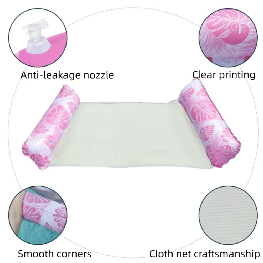Portable Foldable Water Hammock Floating with Net Backrest Water Bed Striped Inflatable Swimming Pool Mattress Beach Sports