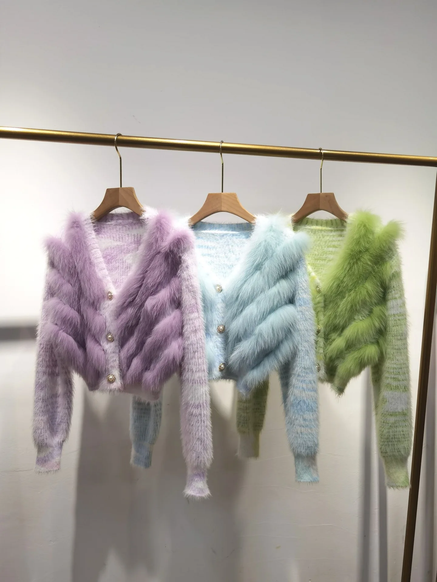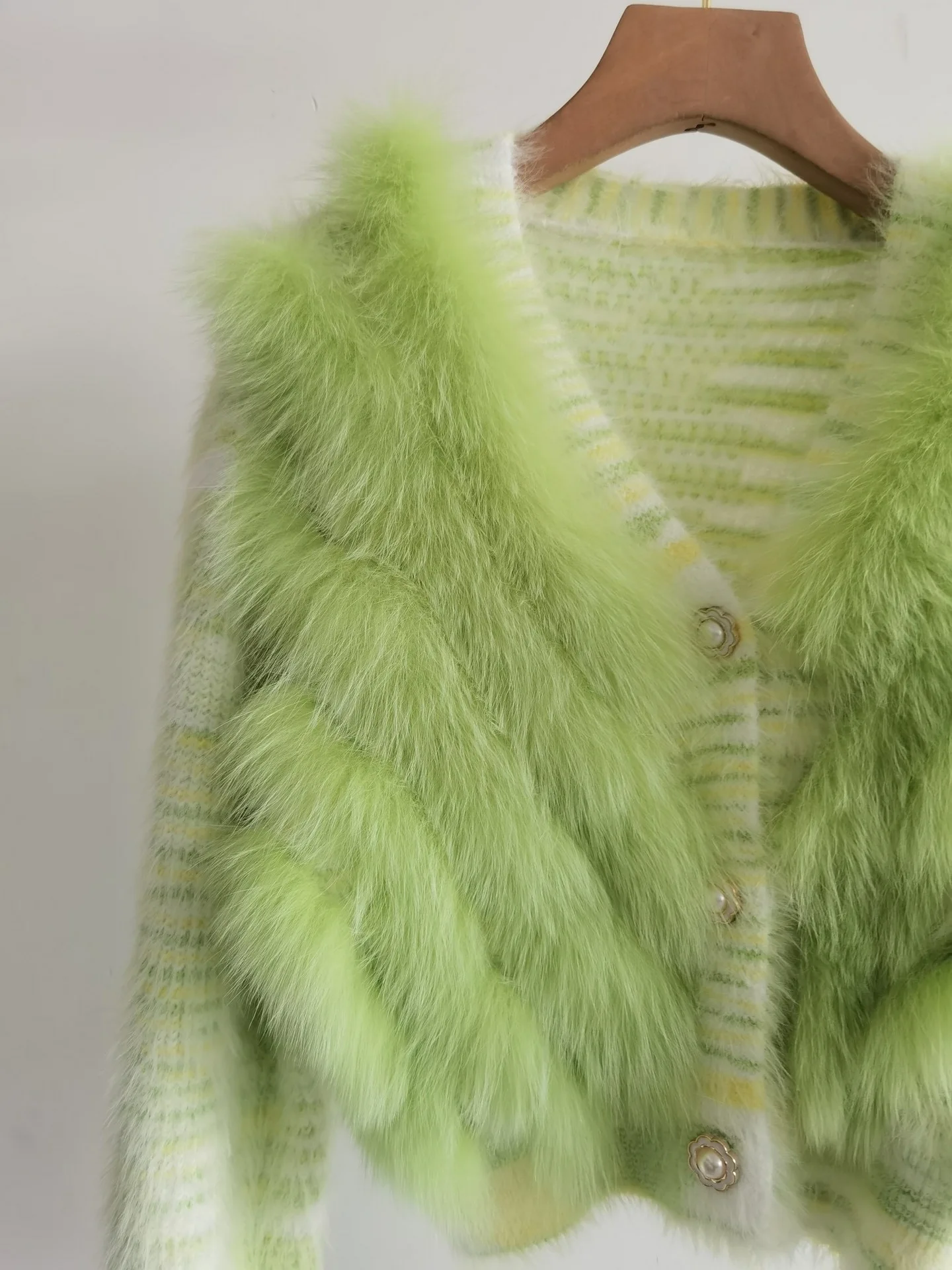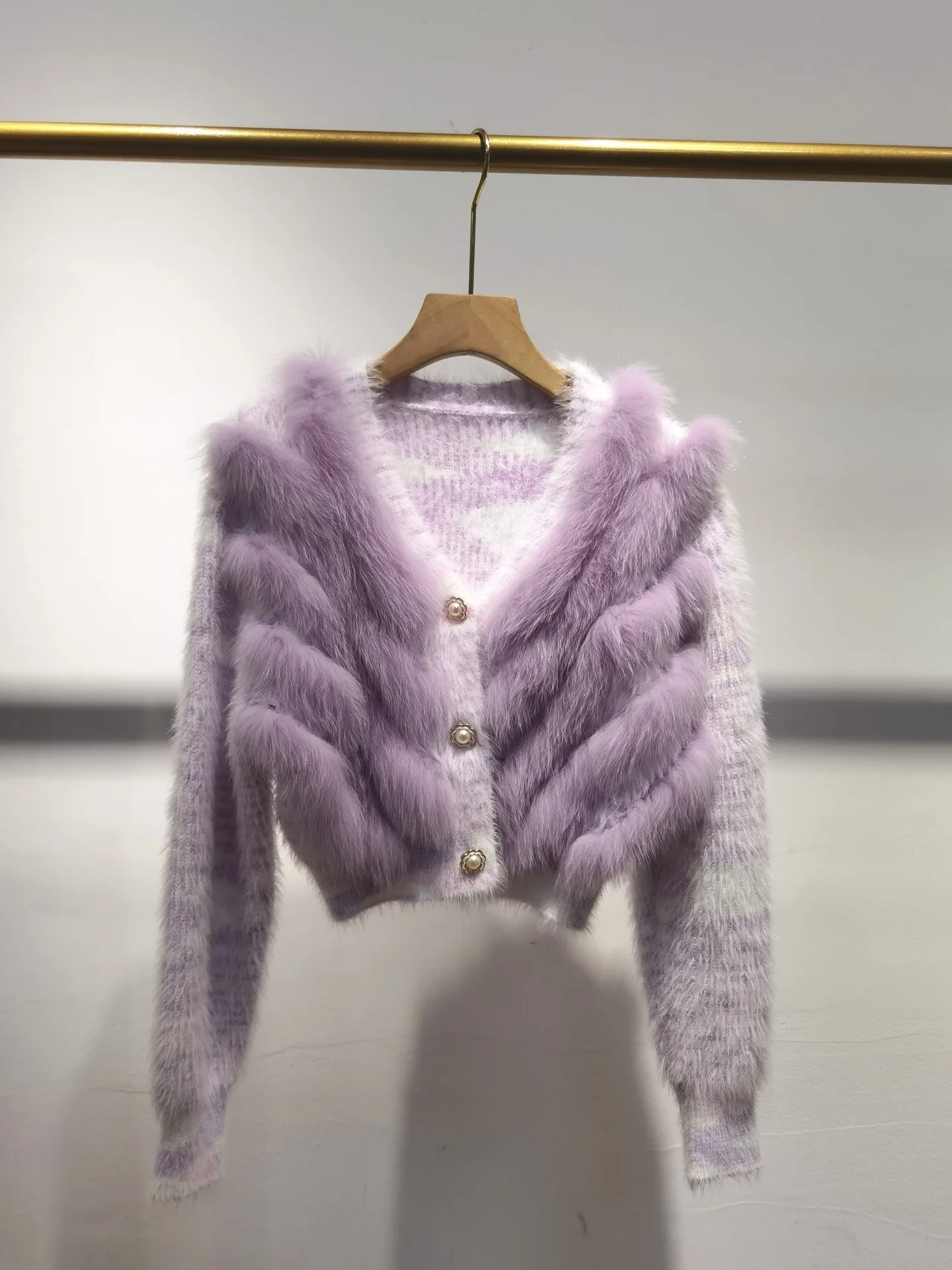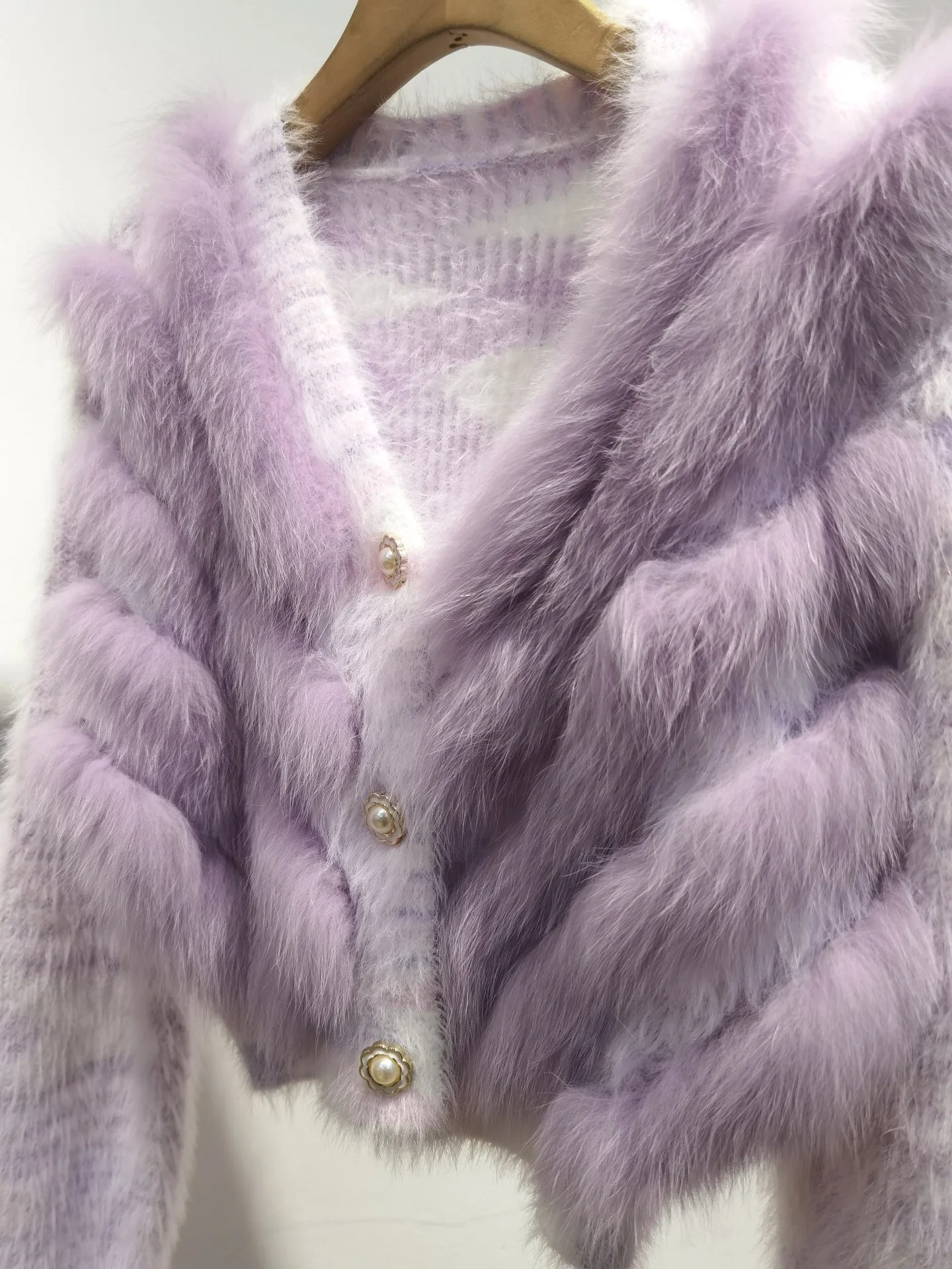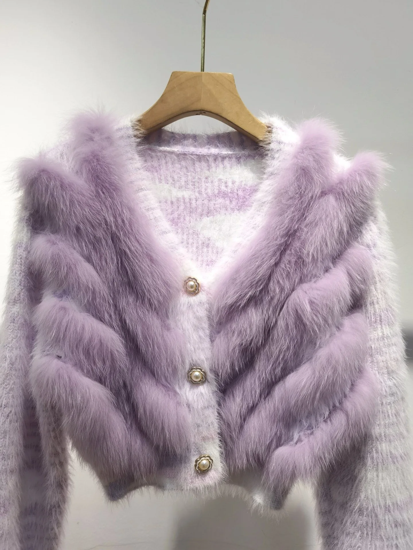 Real Fox Fur Sweater Stitching Fur Female Short Cardigan Coat Sweater Furry 2025 New Spring and Autumn Tops