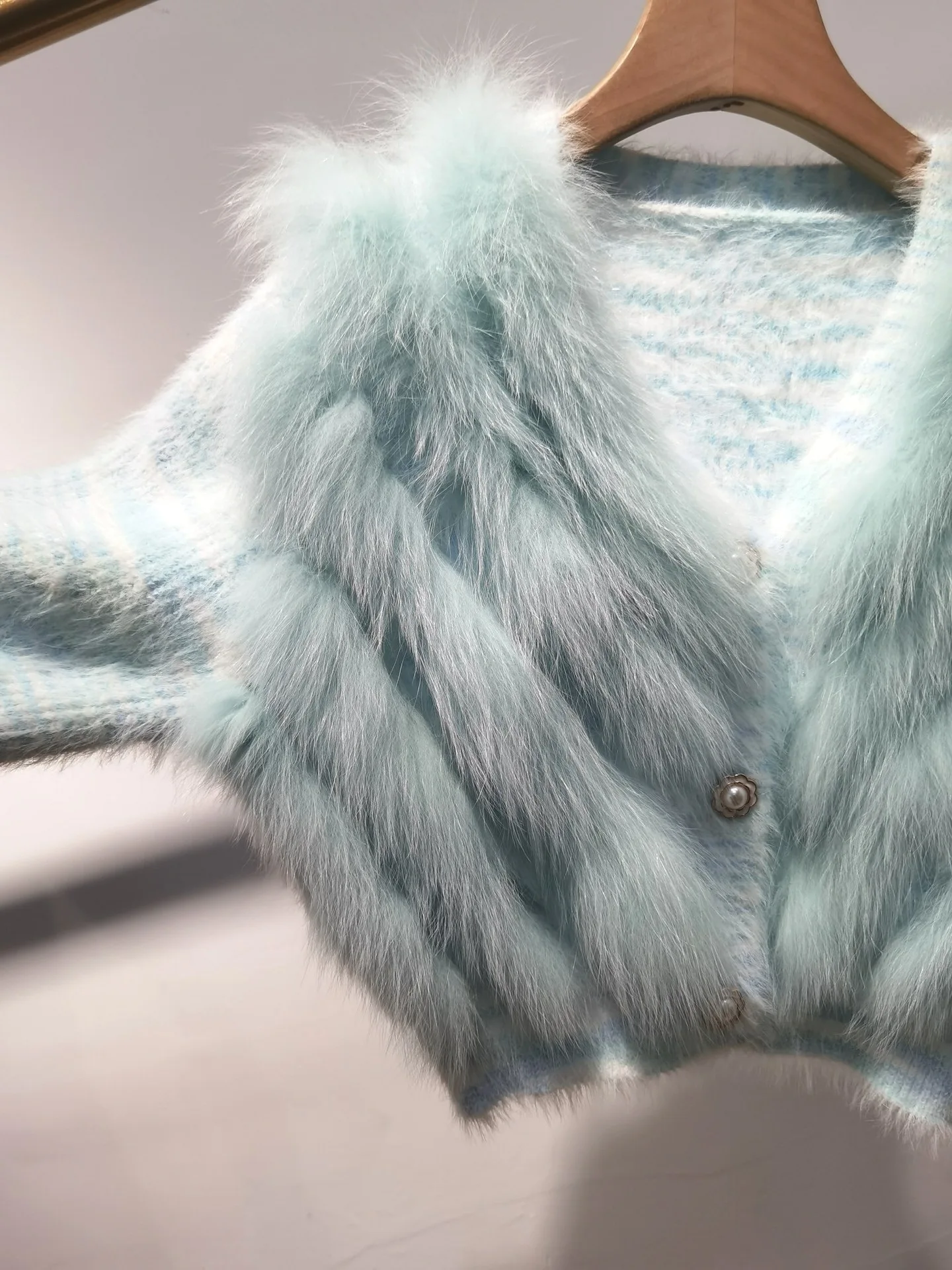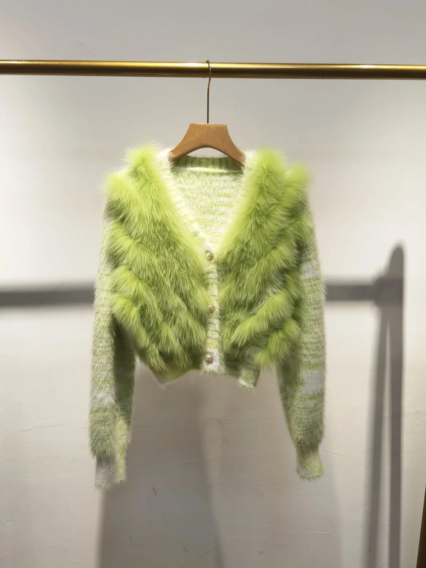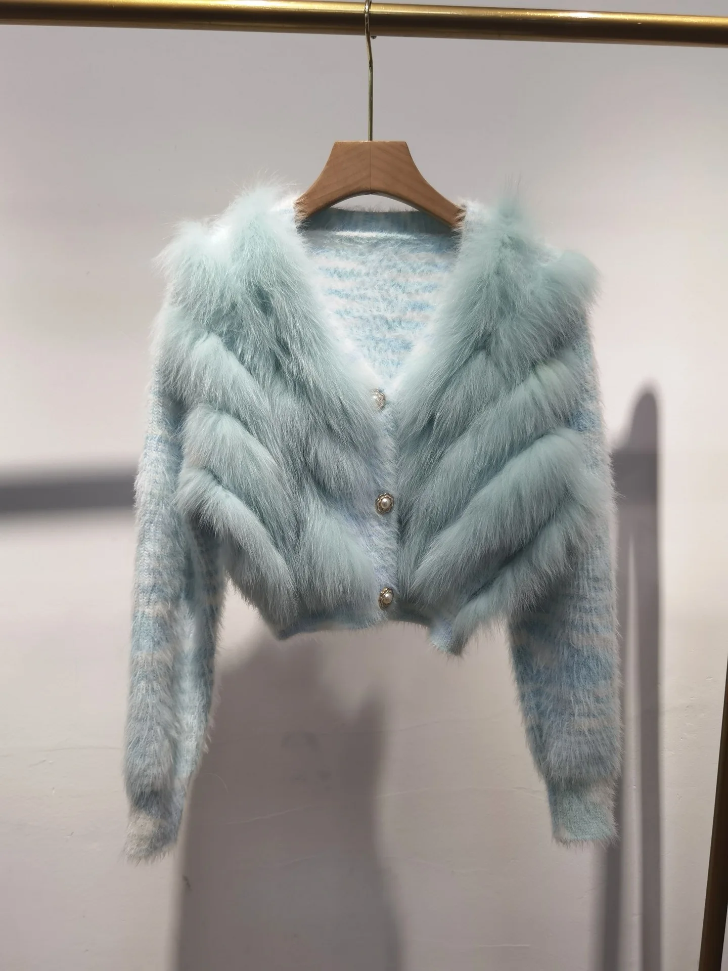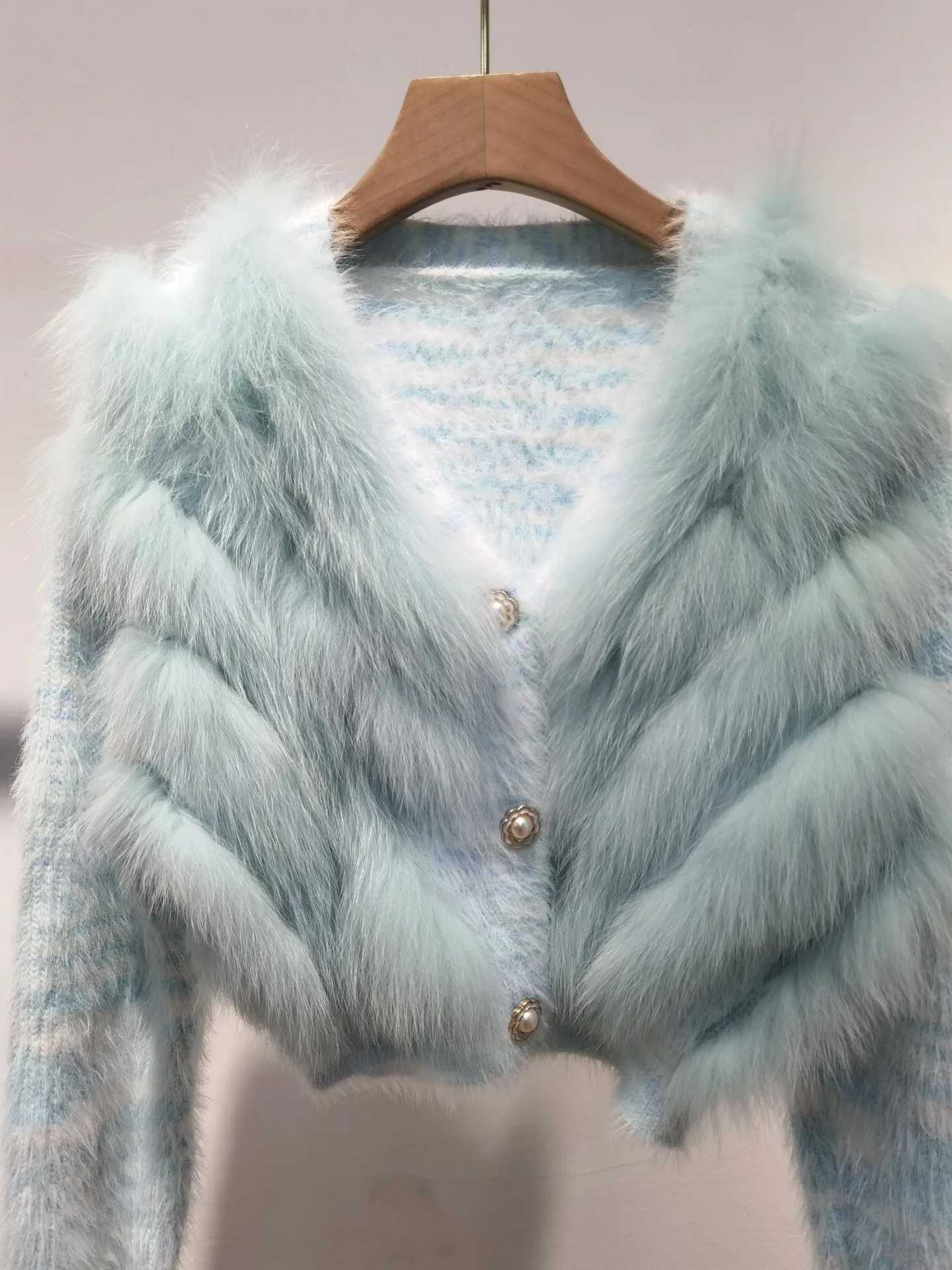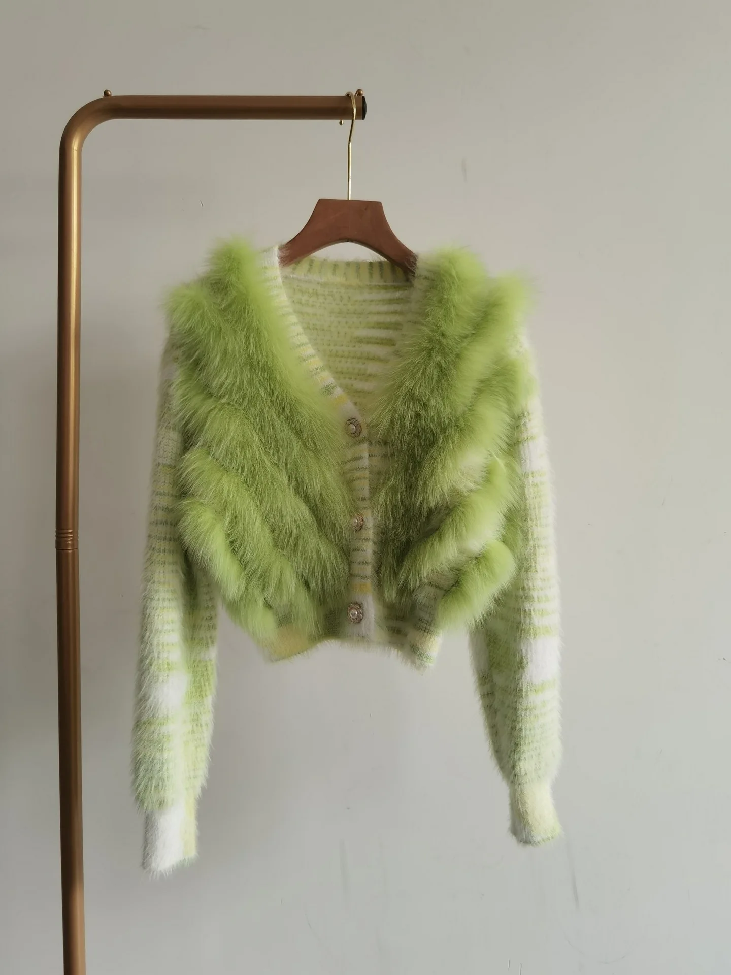 Real Fox Fur Sweater Stitching Fur Female Short Cardigan Coat Sweater Furry 2025 New Spring and Autumn Tops