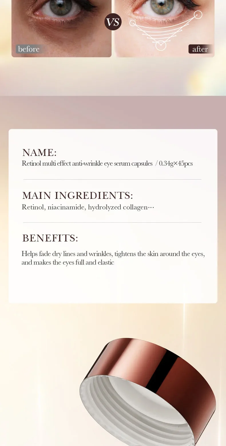 ★Retinol Anti Wrinkle Eye Serum Capsules Firming Lifting Remove Dark Circles Eye Bags Puffiness Moisturizing Whitening Eye Care