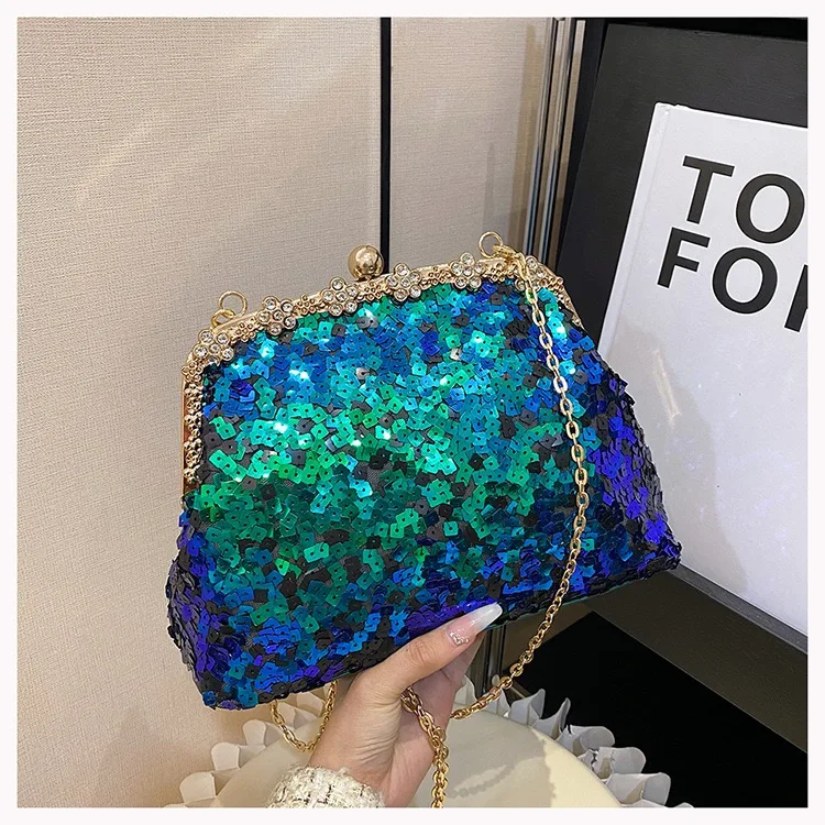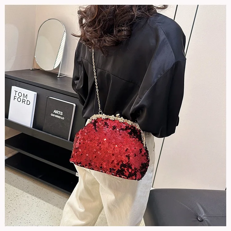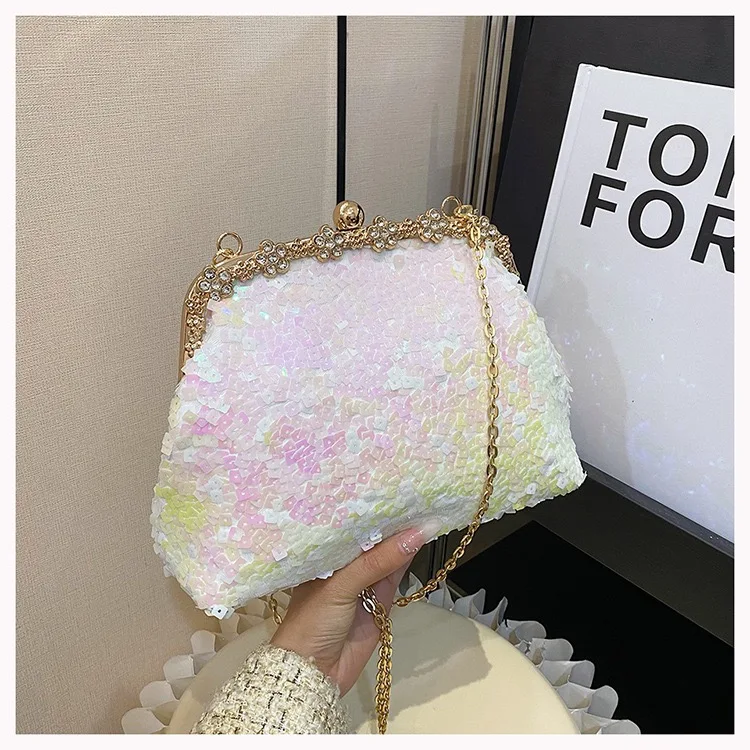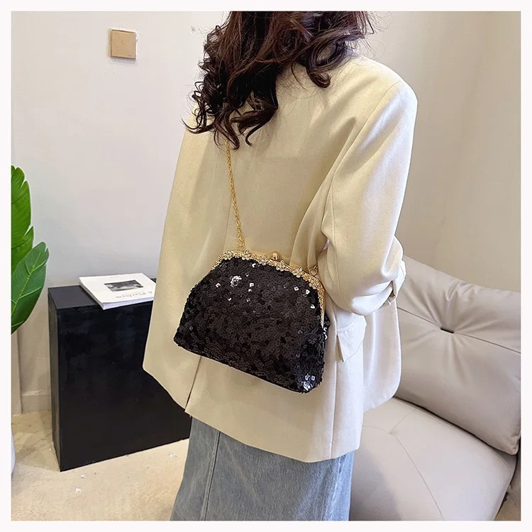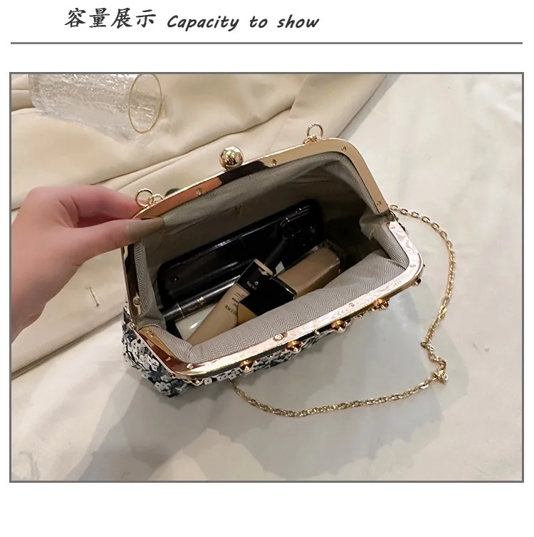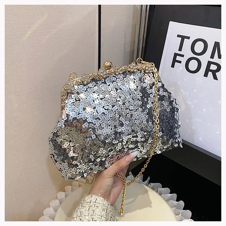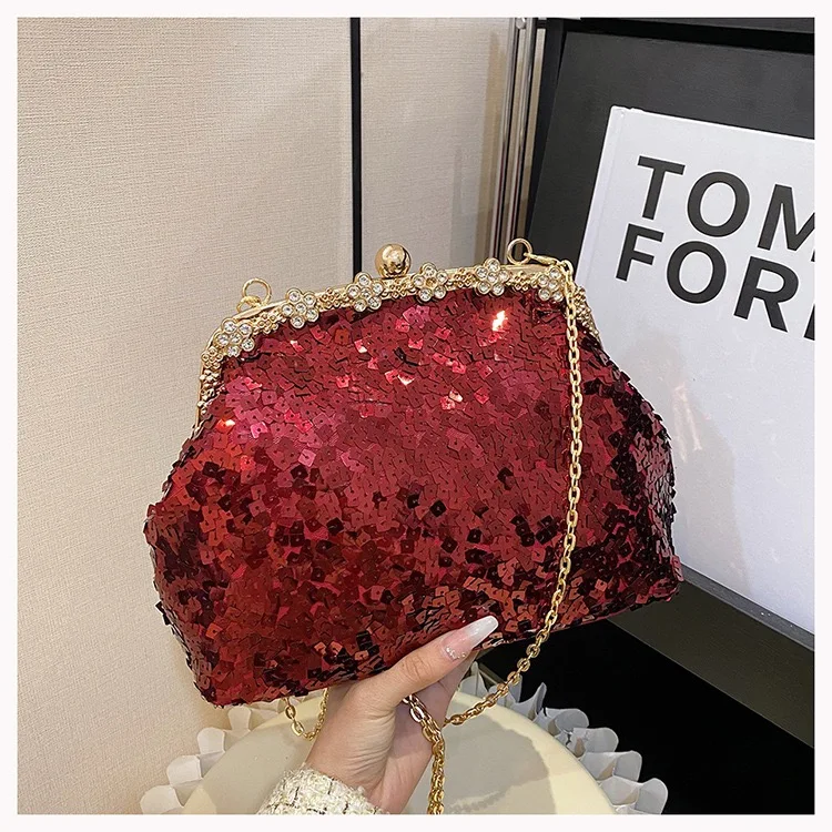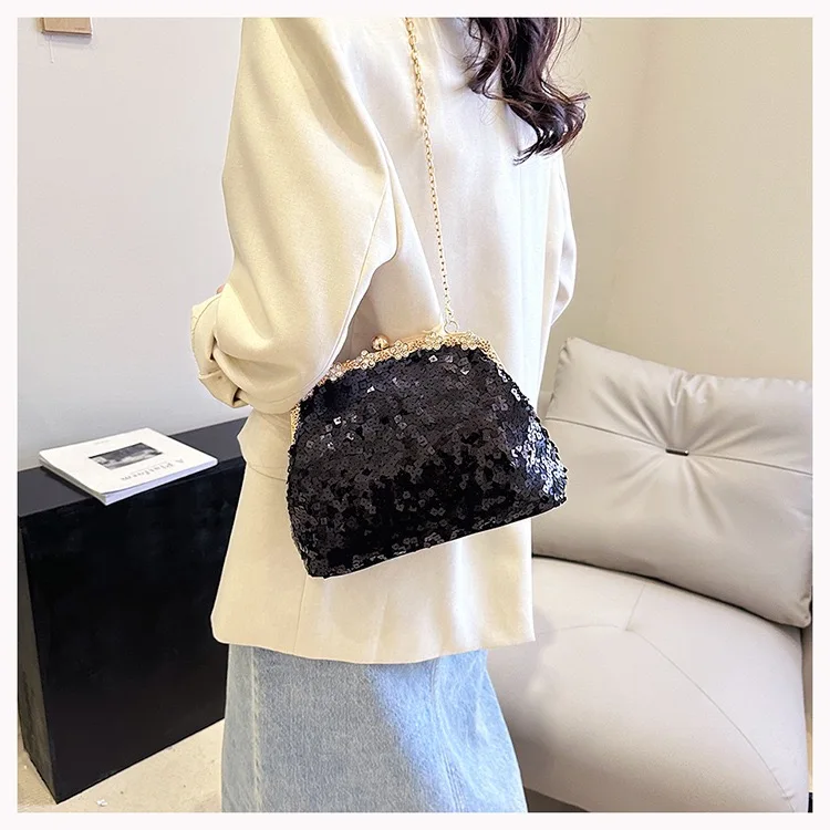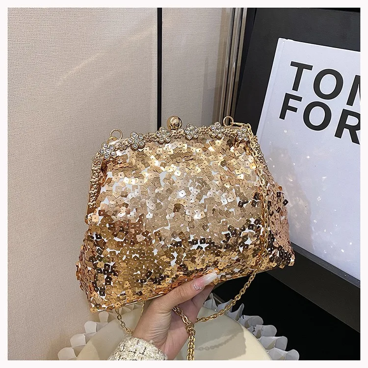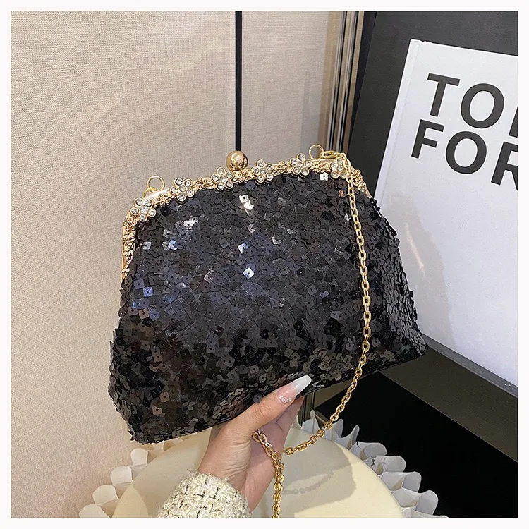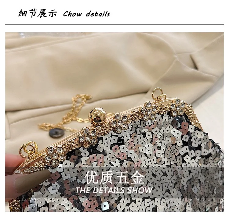 Retro Clasp Clutch Women New Style Sequins And Rhinestones Evening Shoulder Bag Socialites Versatile Crossbody Bag