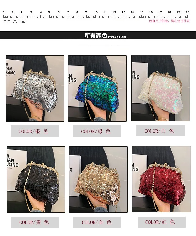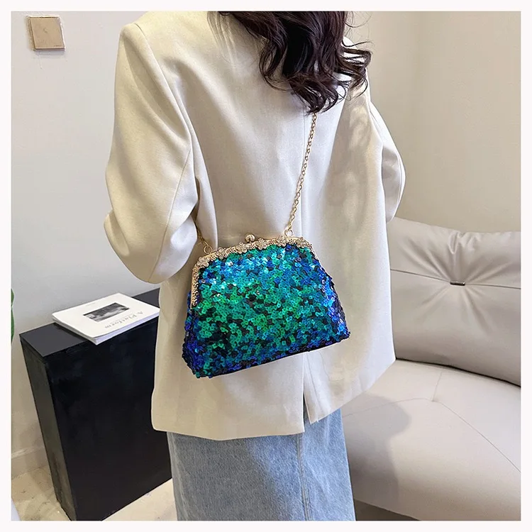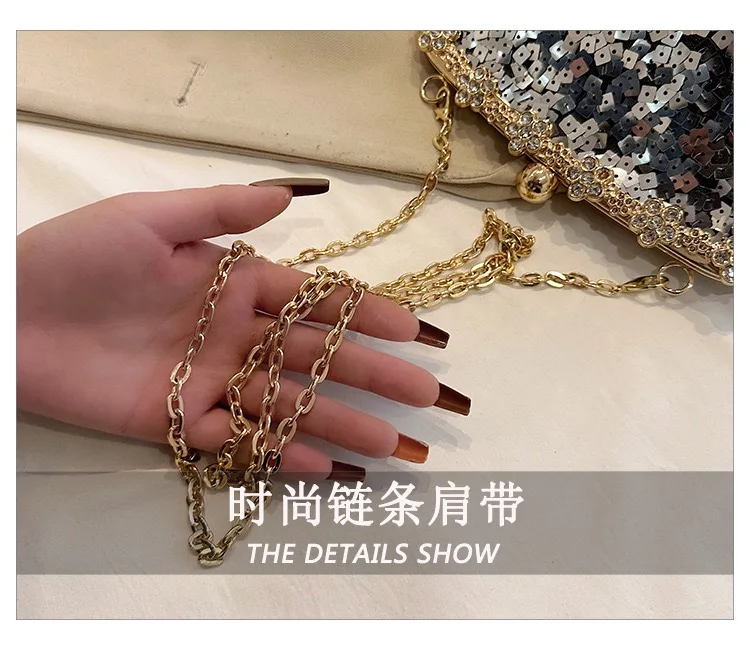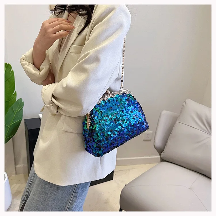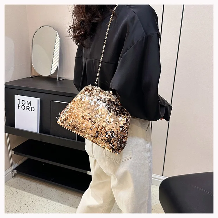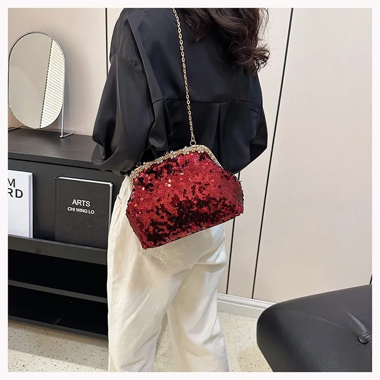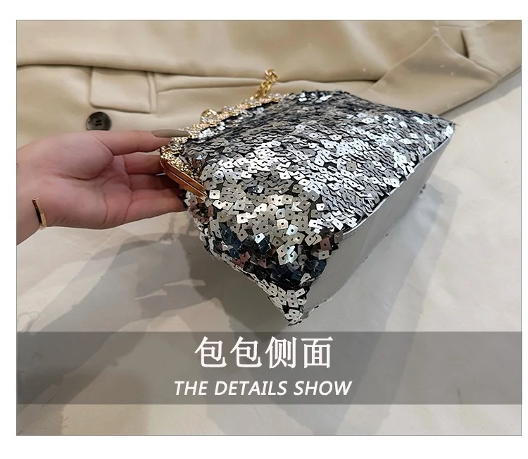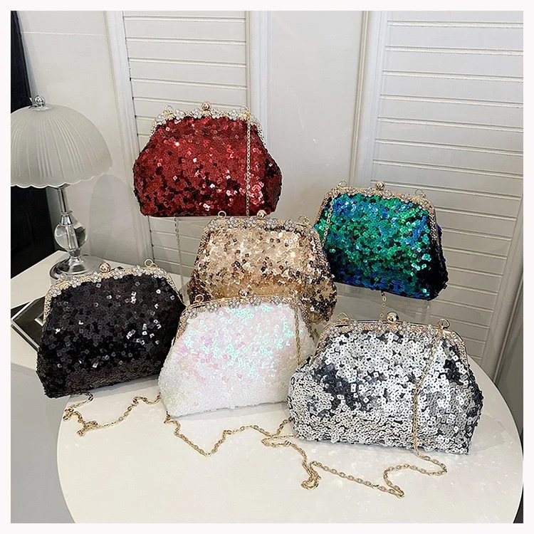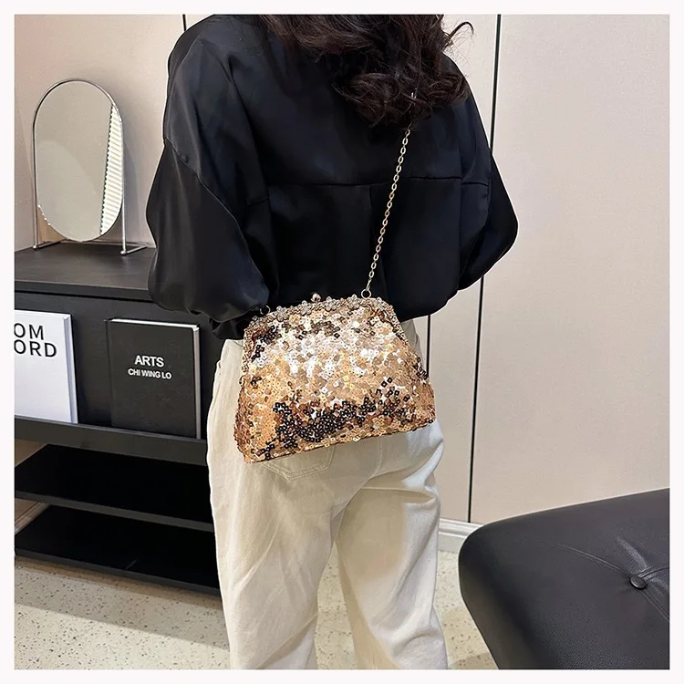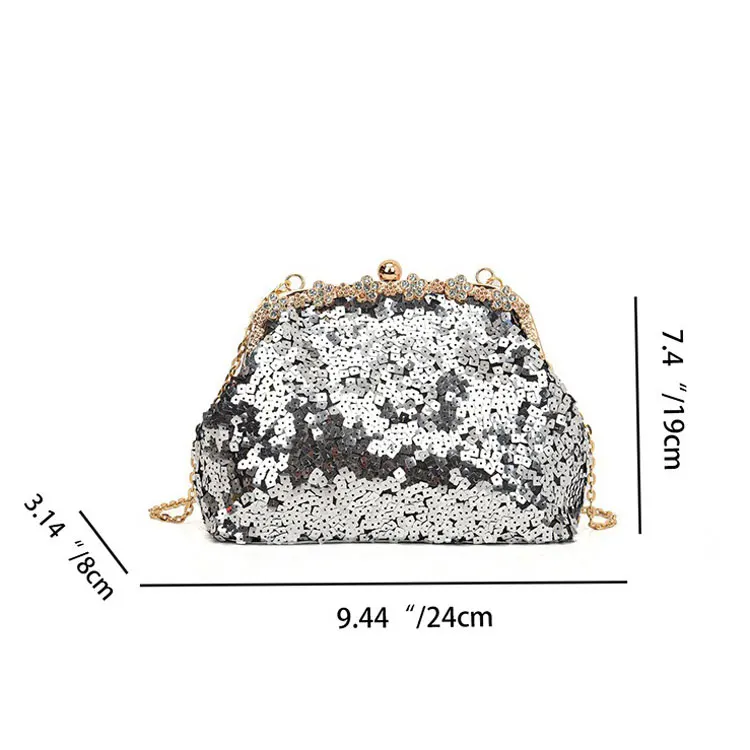 Retro Clasp Clutch Women New Style Sequins And Rhinestones Evening Shoulder Bag Socialites Versatile Crossbody Bag