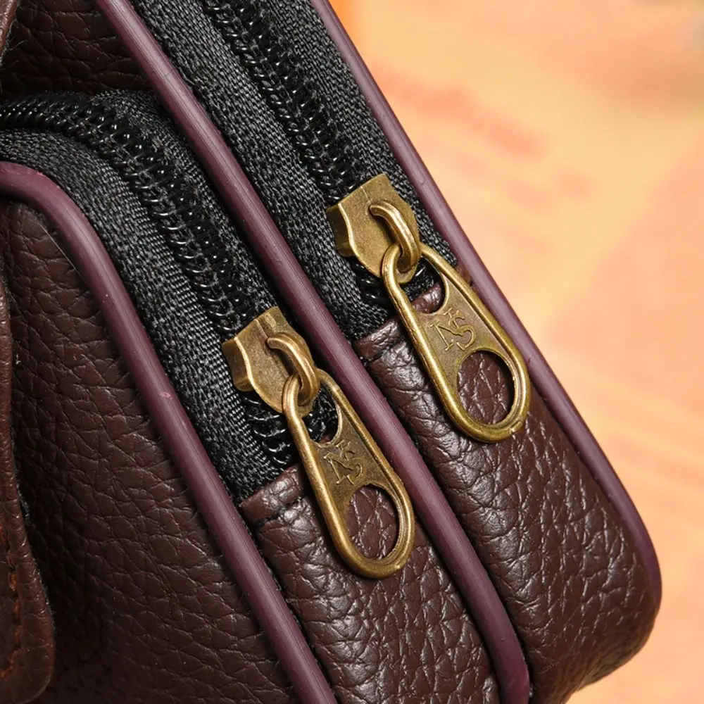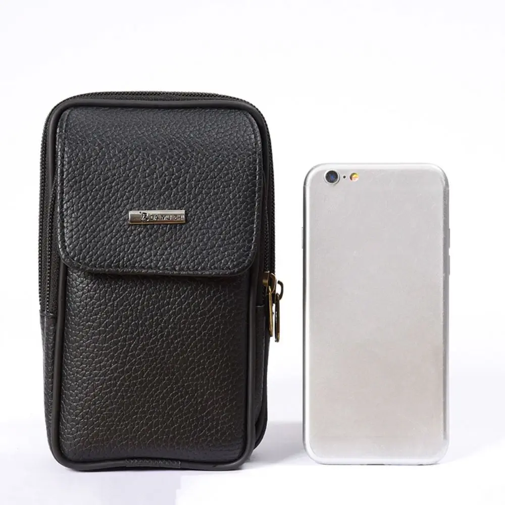 Retro Leather Small Waist Bag Solid Color Bum Belt Pack Casual Fanny Business Waist Bag Men Travel Sports Belt Bum Phone Pouch
