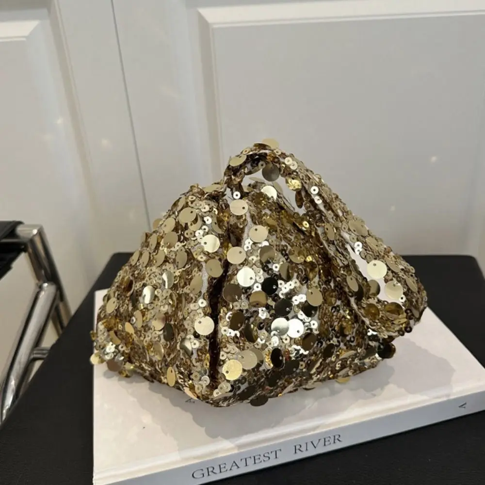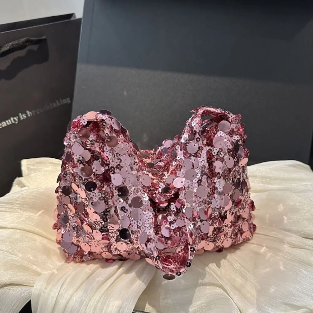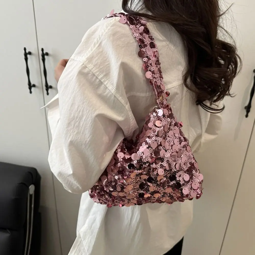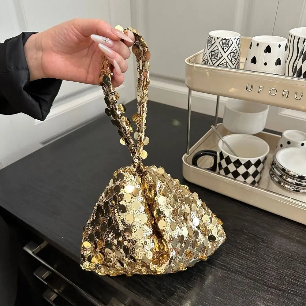 Retro Shiny Silver Sequin Wrist Bag Zipper Handbag Blingbling Handbag Magnetic Small Purse Evening Banquet Bag Party