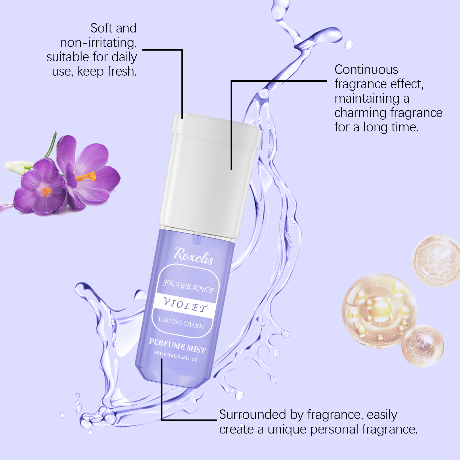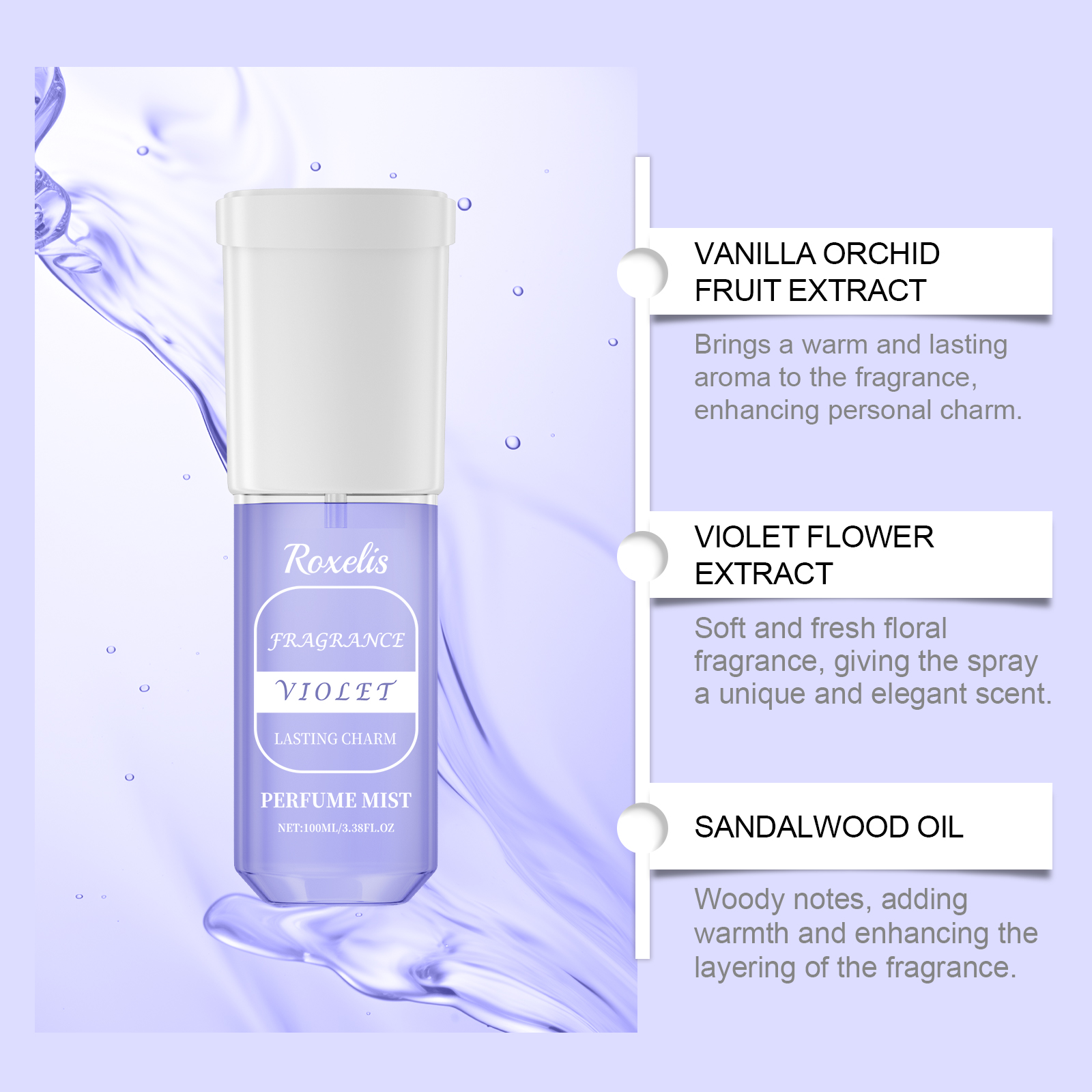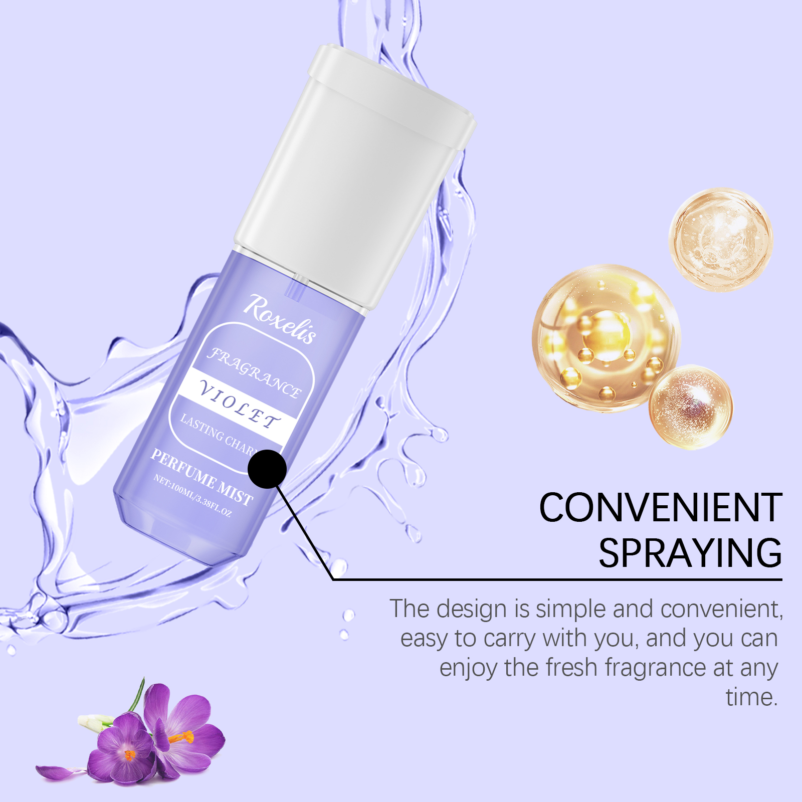 Roxelis Violet Perfume Exudes Charm Lasting Fragrance Portable Elegant Fresh Exudes Niche Body Perfume Spray