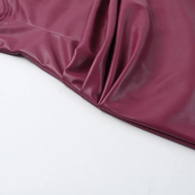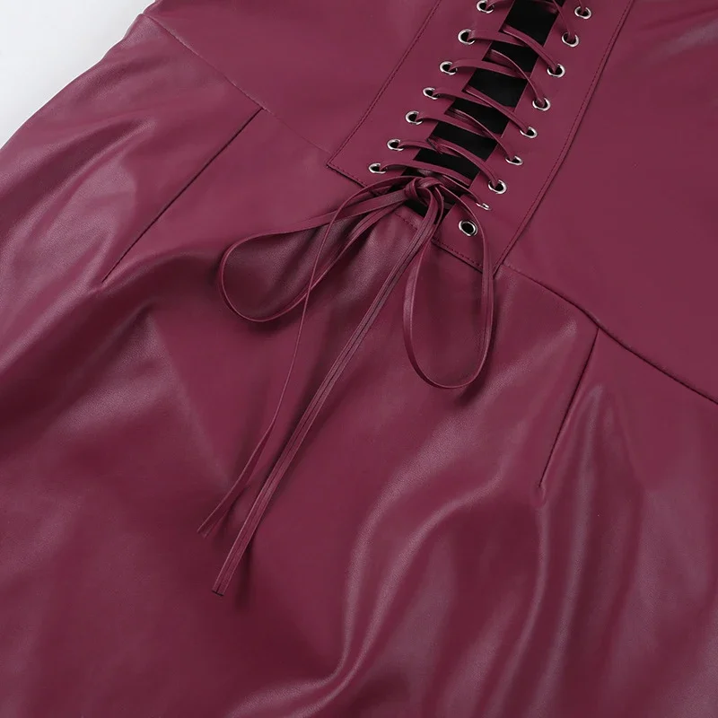 Sexy Burgundy Pu Leather Maxi Dresses Women Strapless Backless Bandage Sleeveless Pleated Hip Package Party Dress New Split Robe