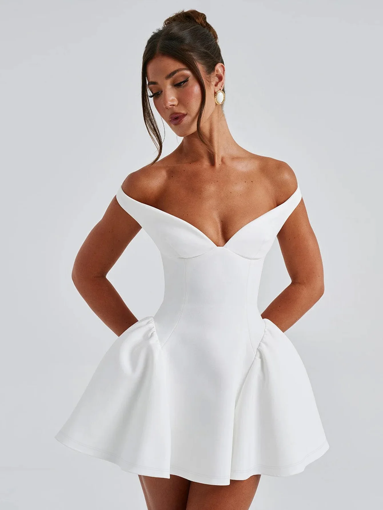 Sexy Club Evening Party Dresses Women Clothing 2025 Summer Dress Elegant Off Shoulder Backless Pleated Short Mini White Dress