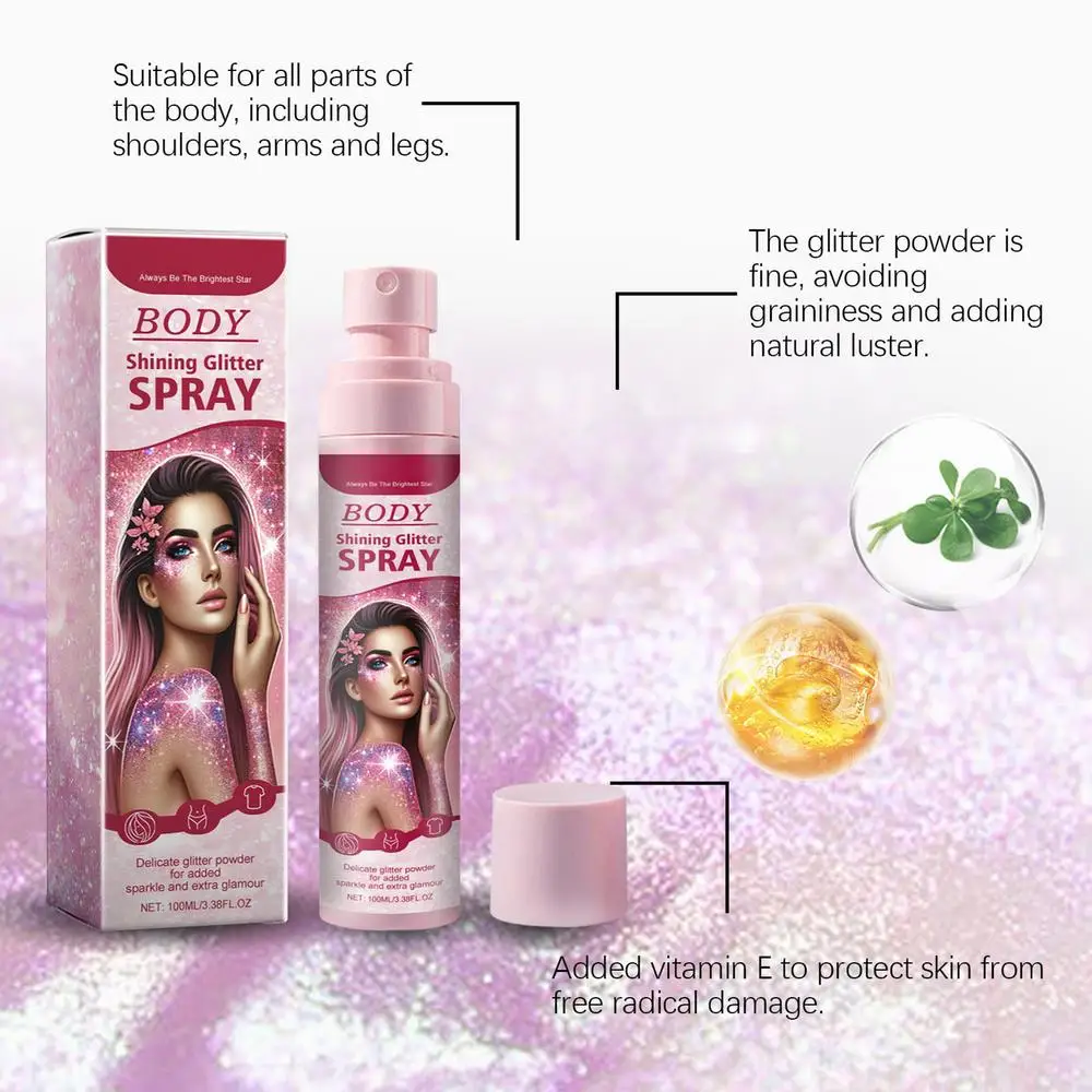 2.Enhanced Charm: Take your shine to the next step with our Glitter Spray for Hair and Body. Made with high-quality glitter, it delivers long-lasting sparkle that keeps you glowing all day and night, maintaining your perfect makeup look.