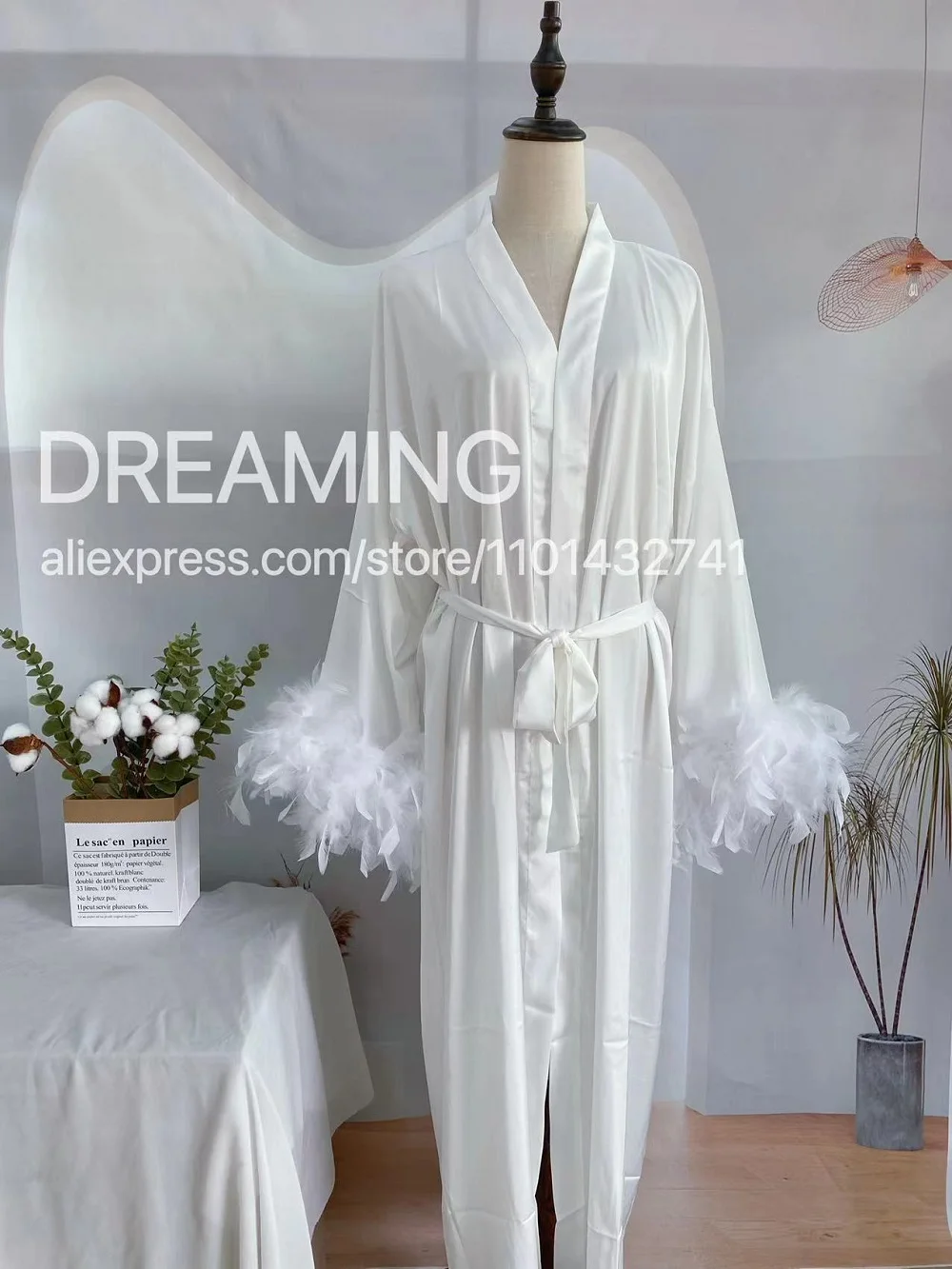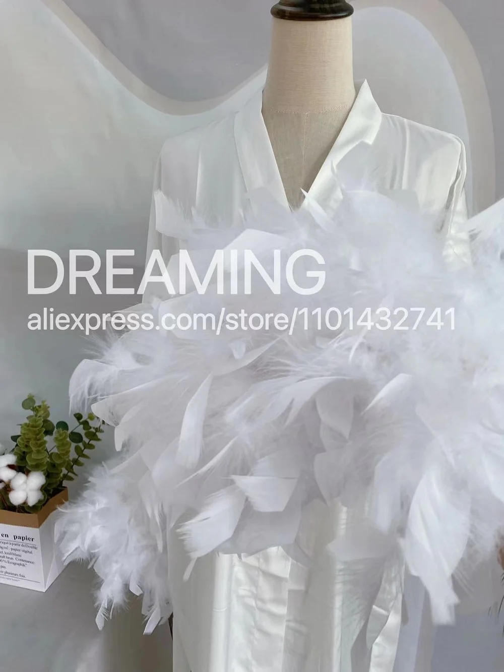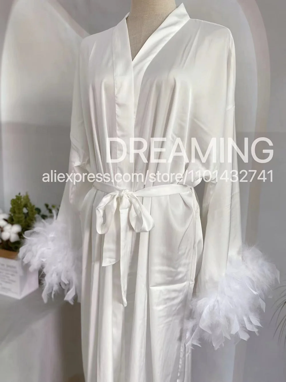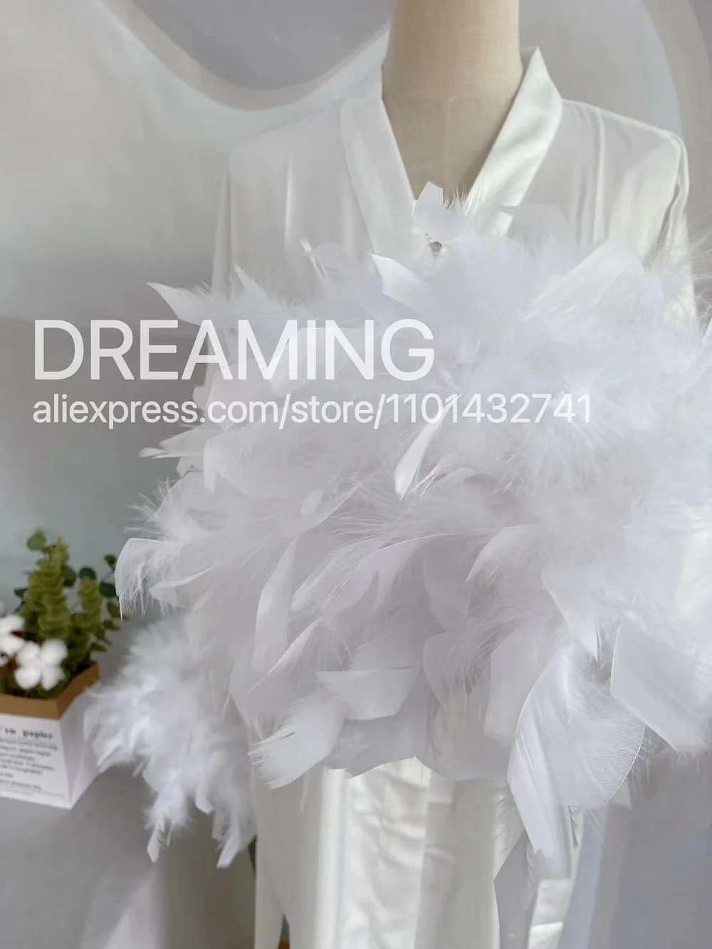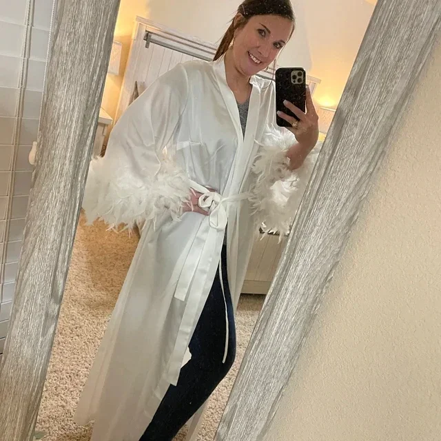 🌟 What is it - Elevate your bridal experience with our luxurious Silk Bride Robe featuring exquisite feather trim. This elegant dressing gown is perfect for brides and bridesmaids, ensuring you look stunning in every pre-wedding photo shot. With a graceful length of 132cm, it's a blend of sophistication and comfort, ideal for your special day!