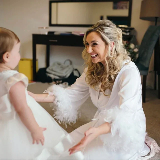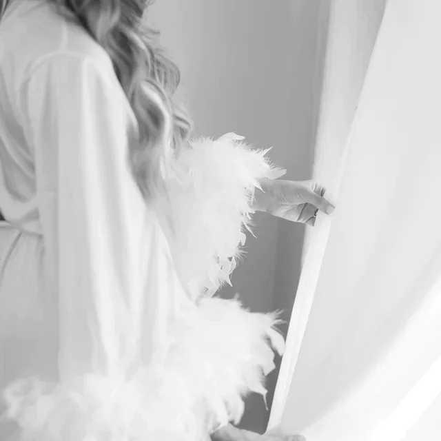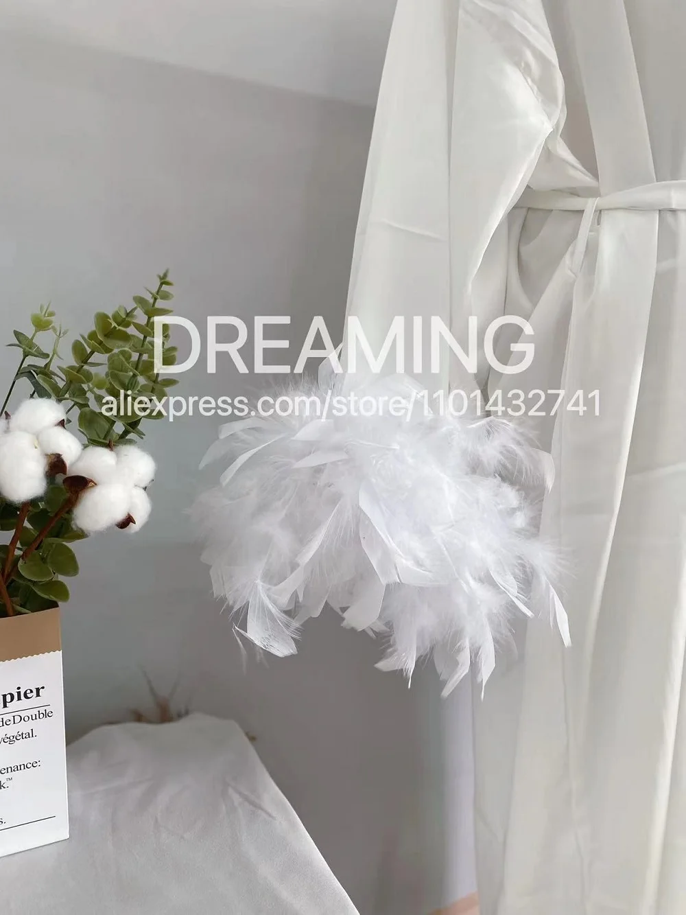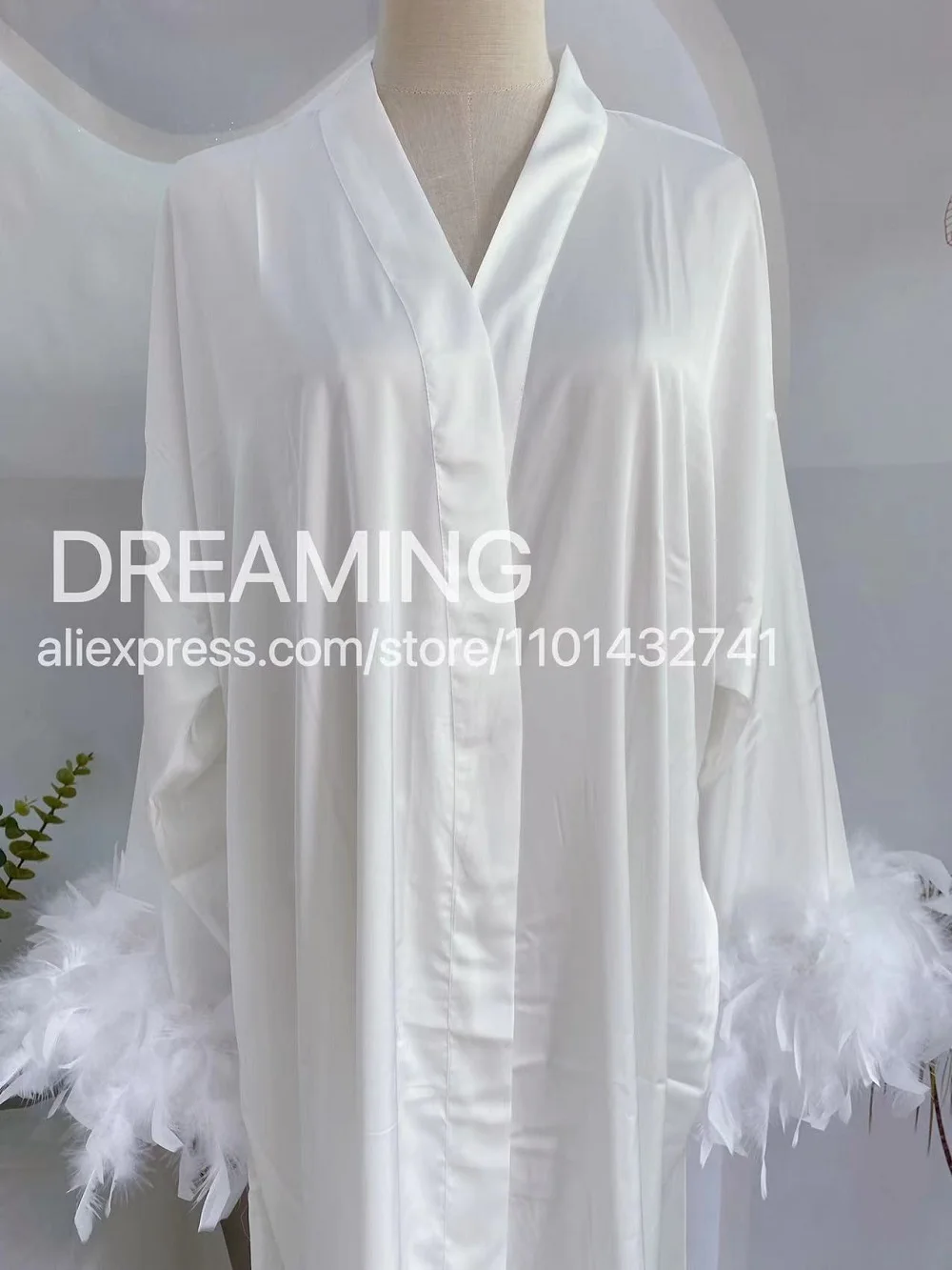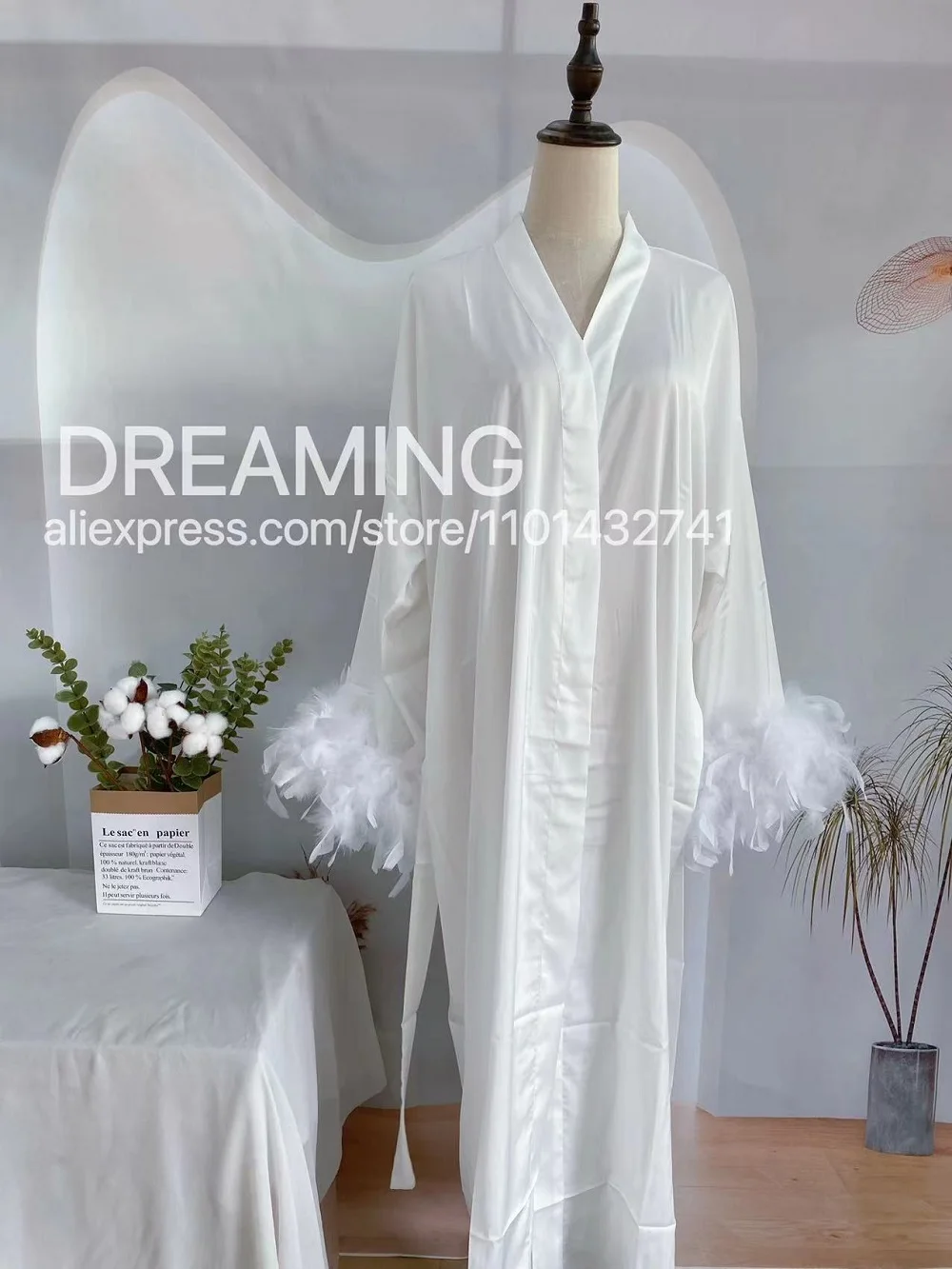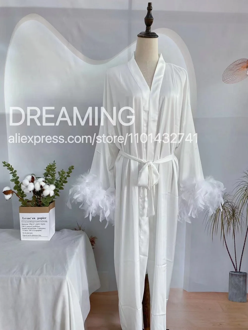 🌟 What is it - Elevate your bridal experience with our luxurious Silk Bride Robe featuring exquisite feather trim. This elegant dressing gown is perfect for brides and bridesmaids, ensuring you look stunning in every pre-wedding photo shot. With a graceful length of 132cm, it's a blend of sophistication and comfort, ideal for your special day!