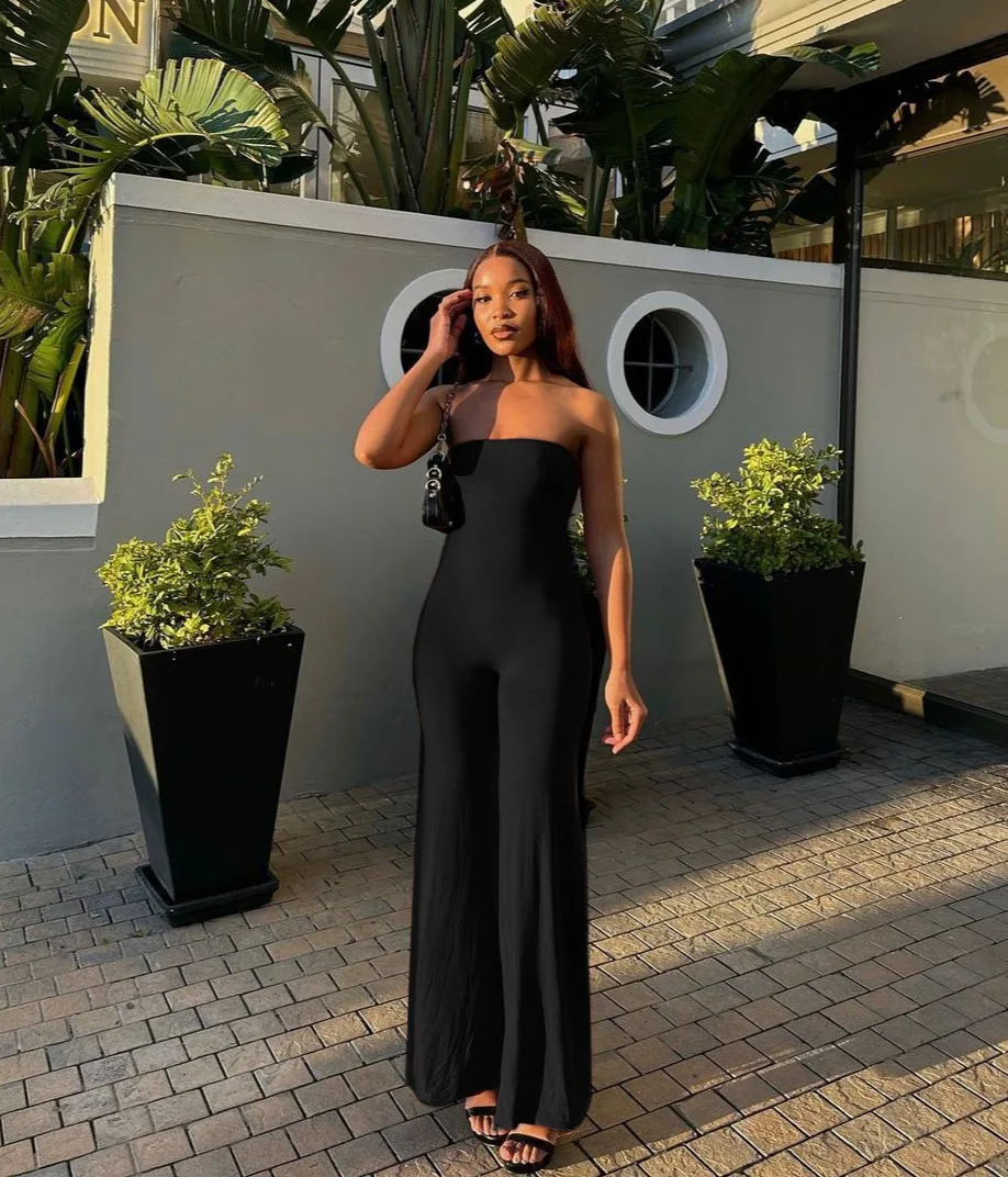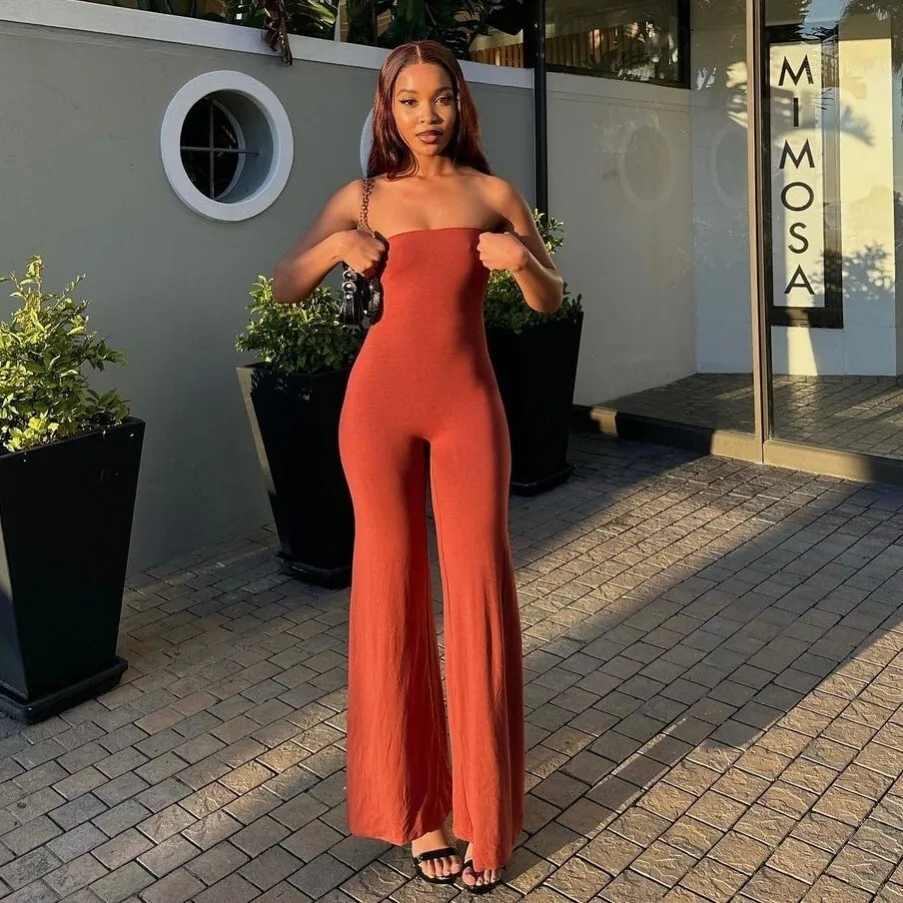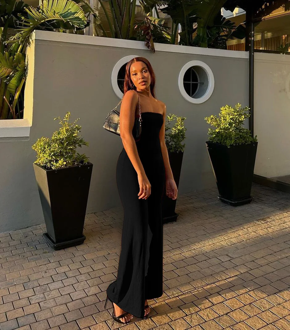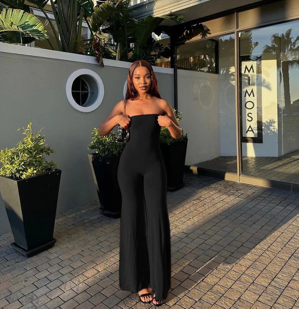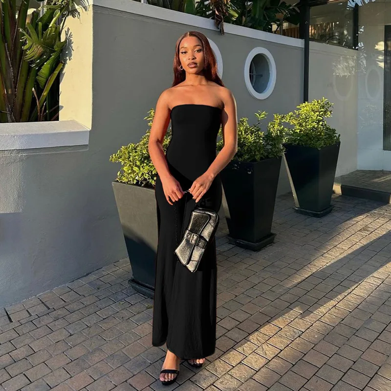 Sleeveless Jumpsuit Fluid Drape Tapered Waist Wide Leg Romper Women Slim Fit Evening Outfit Formal Lounge Wear pant sets