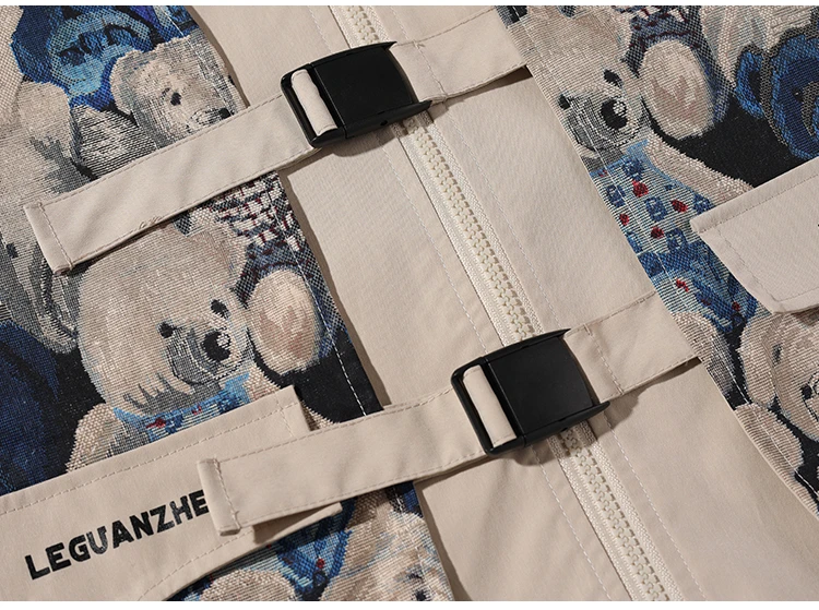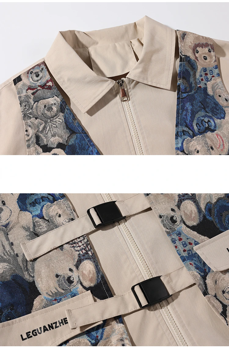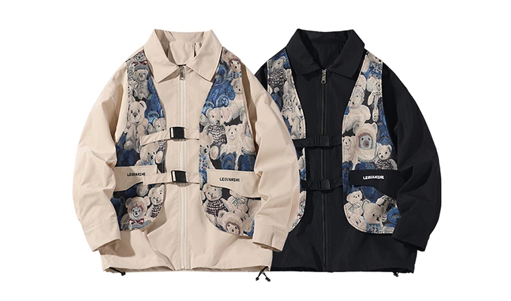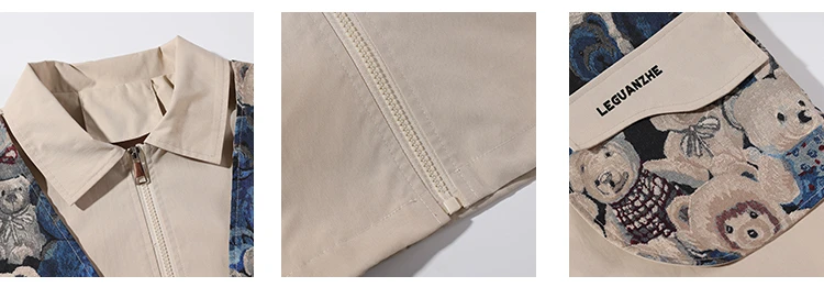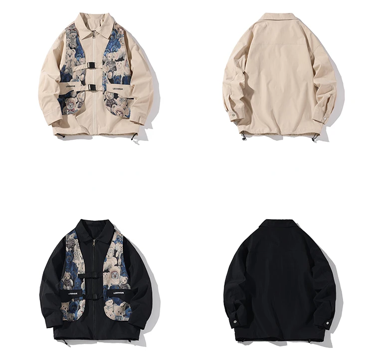 Spring College Jacket Men Women Little Bear Embroidered Fake Two Piece Jackets Harajuku Patchwork Coat Oversize Streetwear Fall