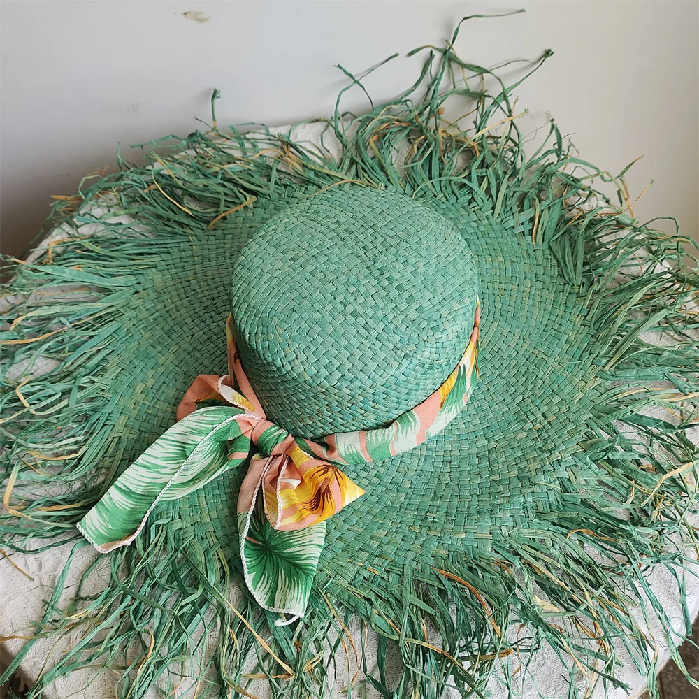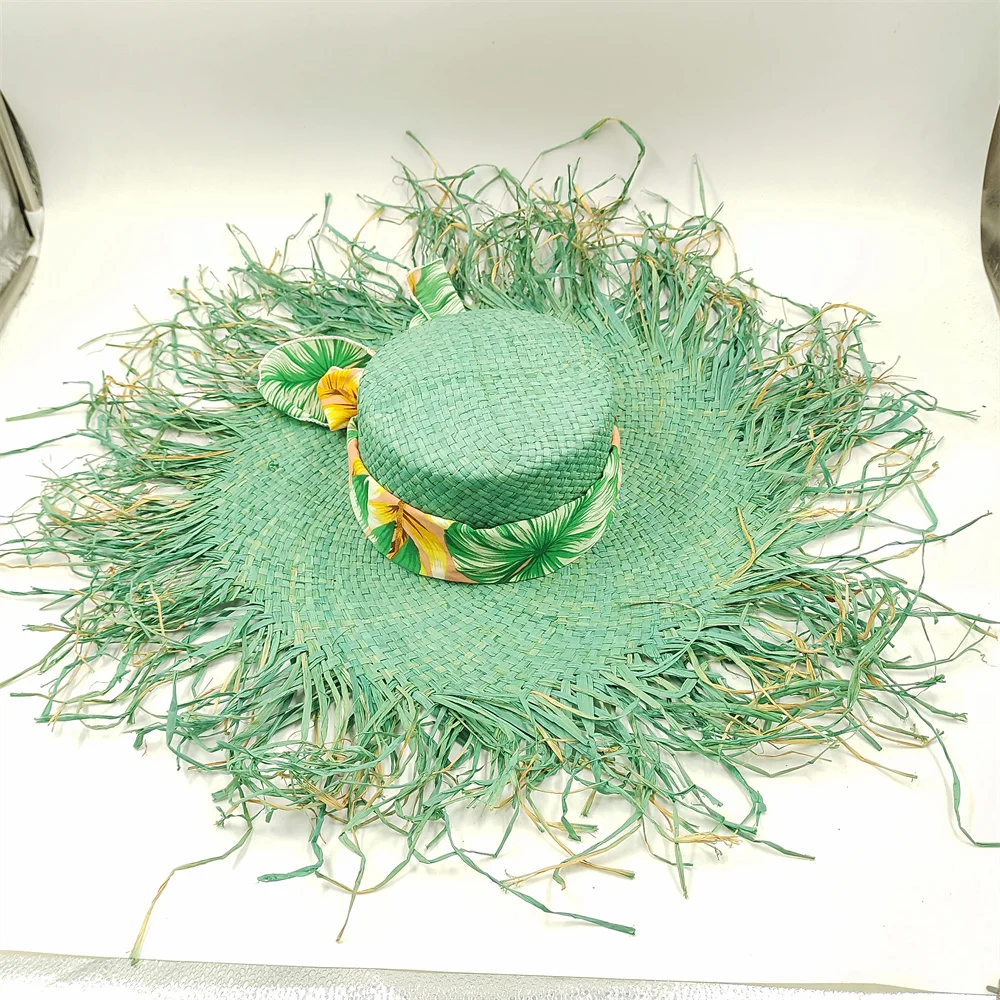 Straw hat women summer Large eaves beach vacation photo sunscreen straw hat personality European style foldable beach hat