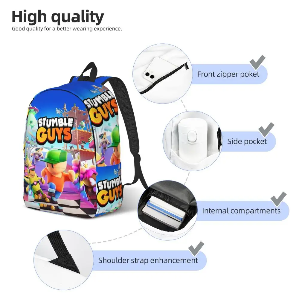 Stumbles Game Cartoon Guys Backpack Men Women High School Hiking Travel Daypack Back to School Gift Laptop Canvas Bags Sports