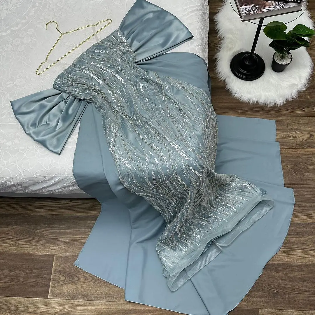 Stunning Off-Shoulder Blue Sequin Dress