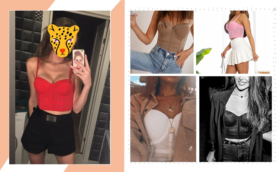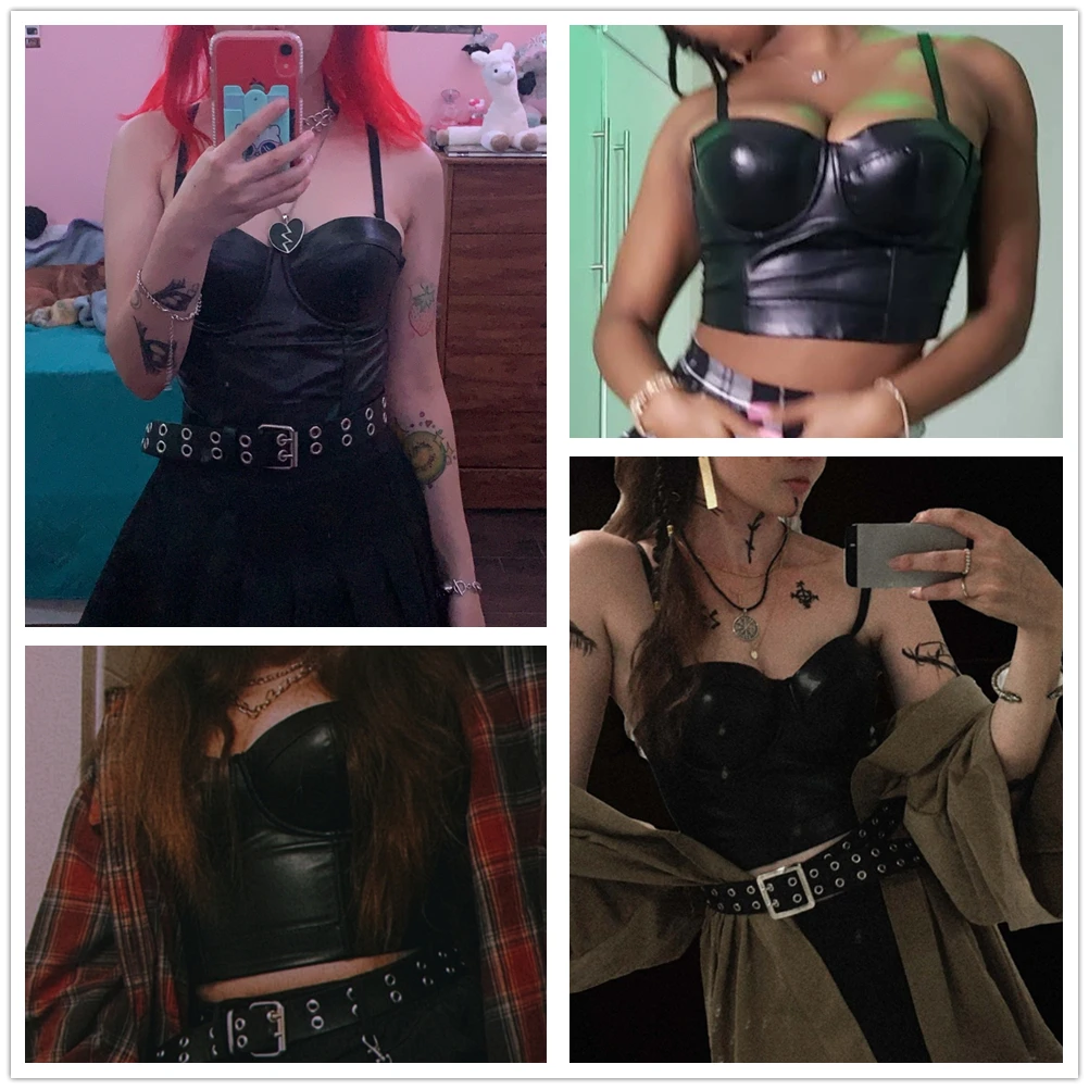 Women's PU Leather Feather Corset Crop Tank Top