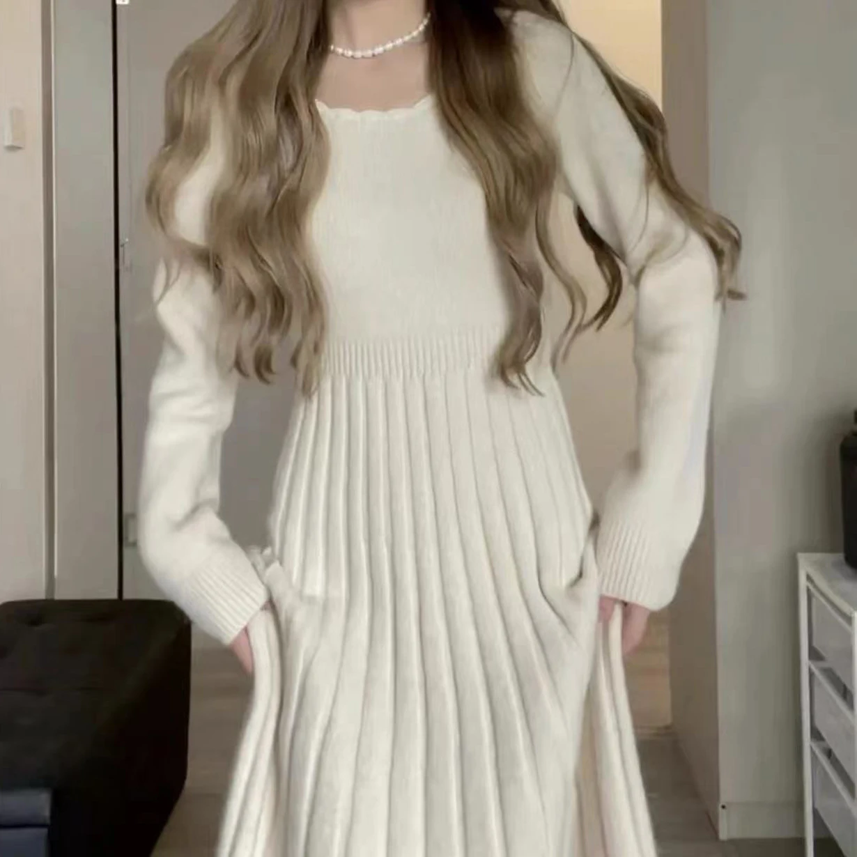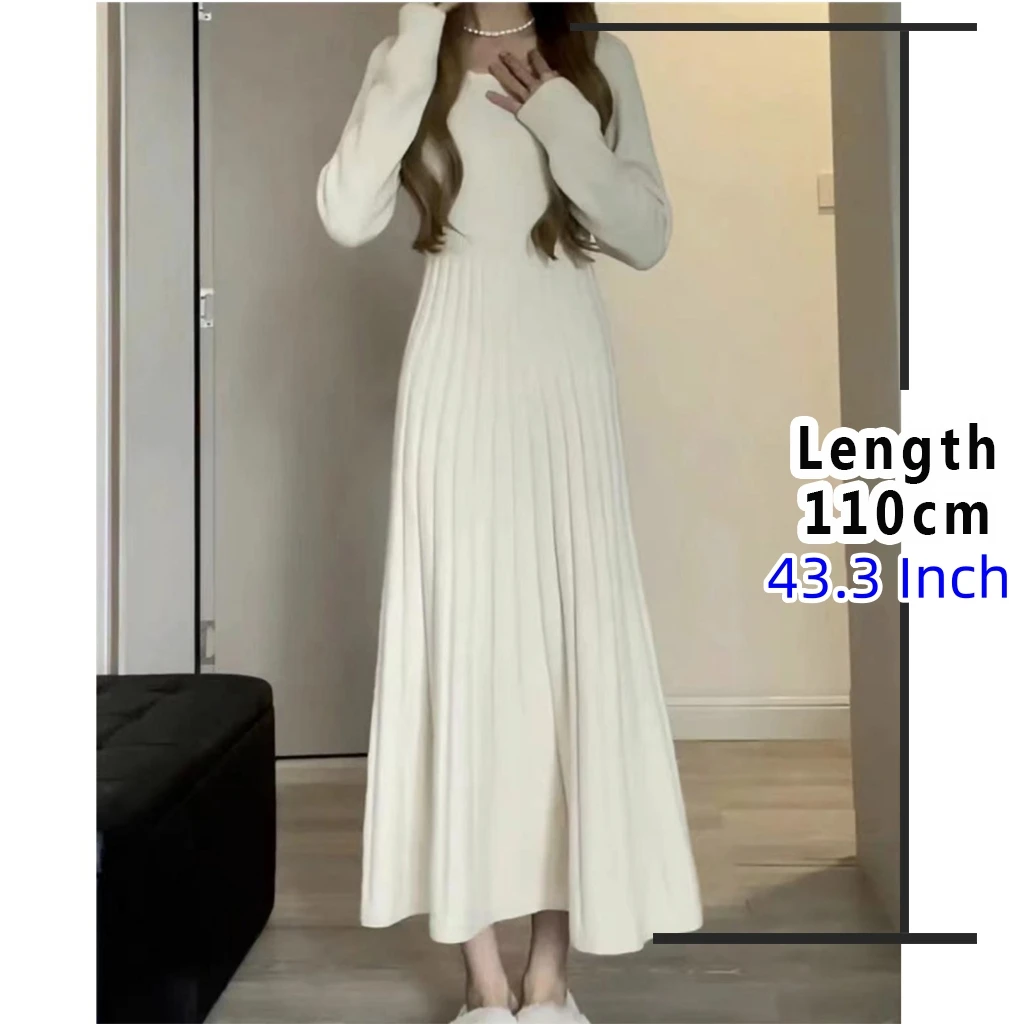Sweater Long Dress For Woman Clothes Swing Casual Winter Chic New Knitted Korean Slim Long Sleeve Elegance Sweet Femal Clothing