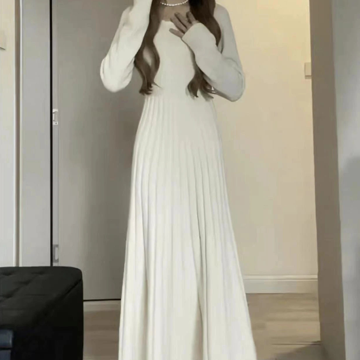 The dress is knitted with elasticity, and the bust can be