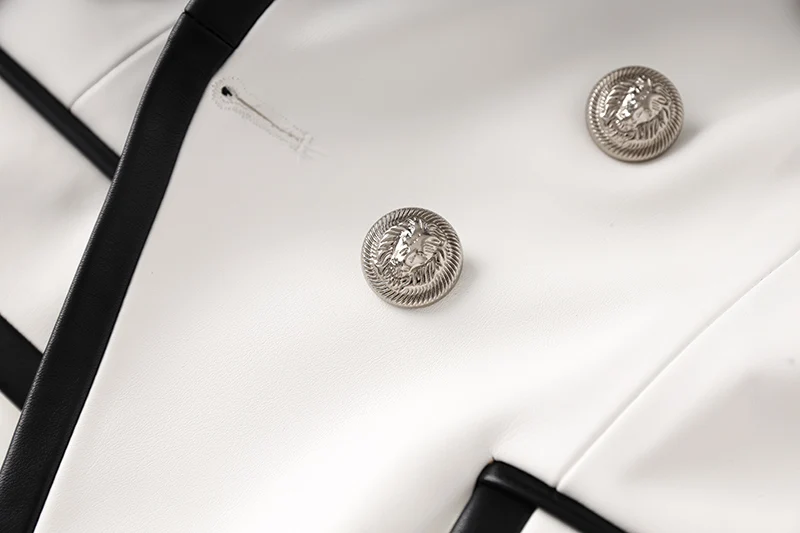 Unique Fall Winter Black Contrast Color White PU Leather Patchwork Jackets Leopard Printing Linging Luxuy Fashion Women Blazers