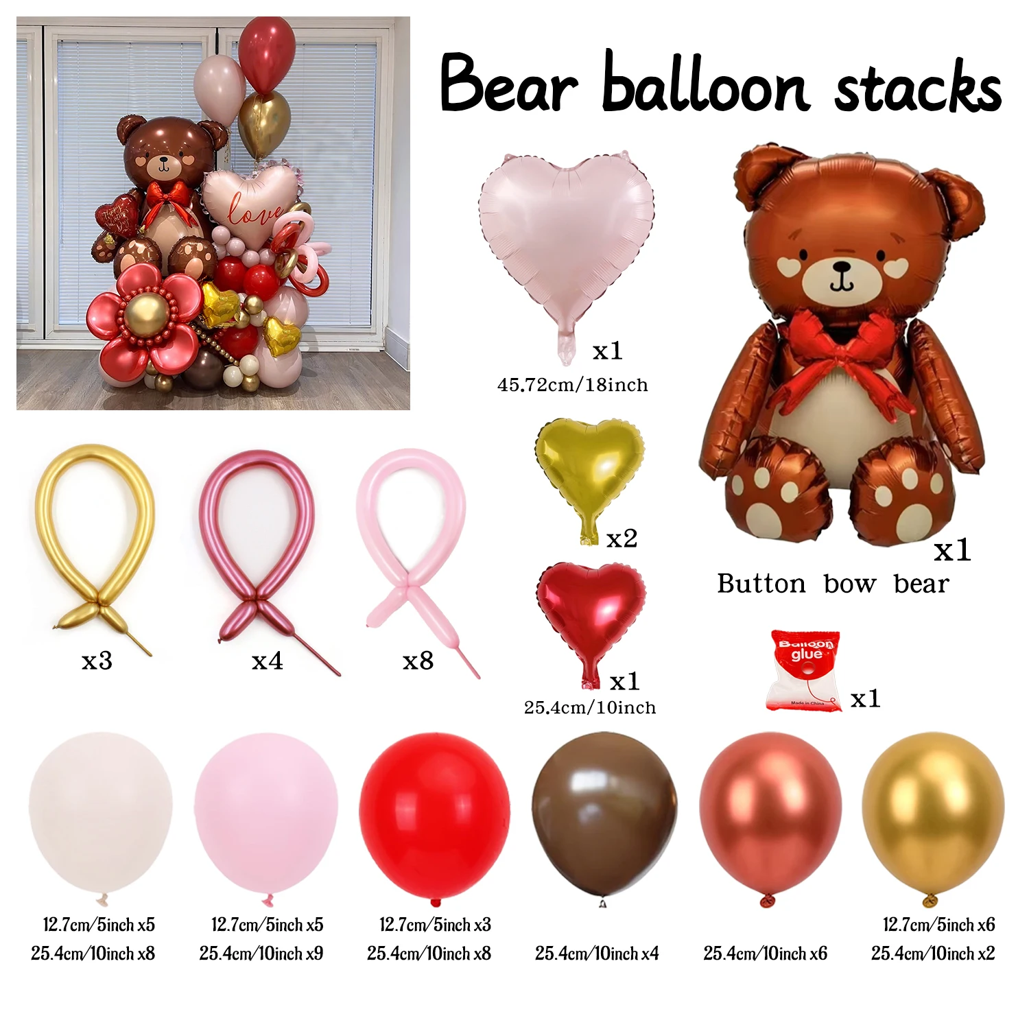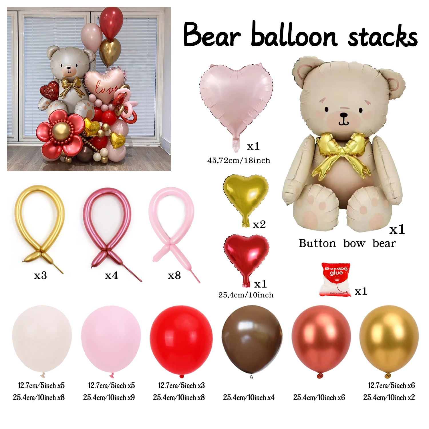 Valentine's Day Bow Bear Set with Love Aluminum Film Balloon Valentine's Day Wedding Shower Party Decoration Photo Props