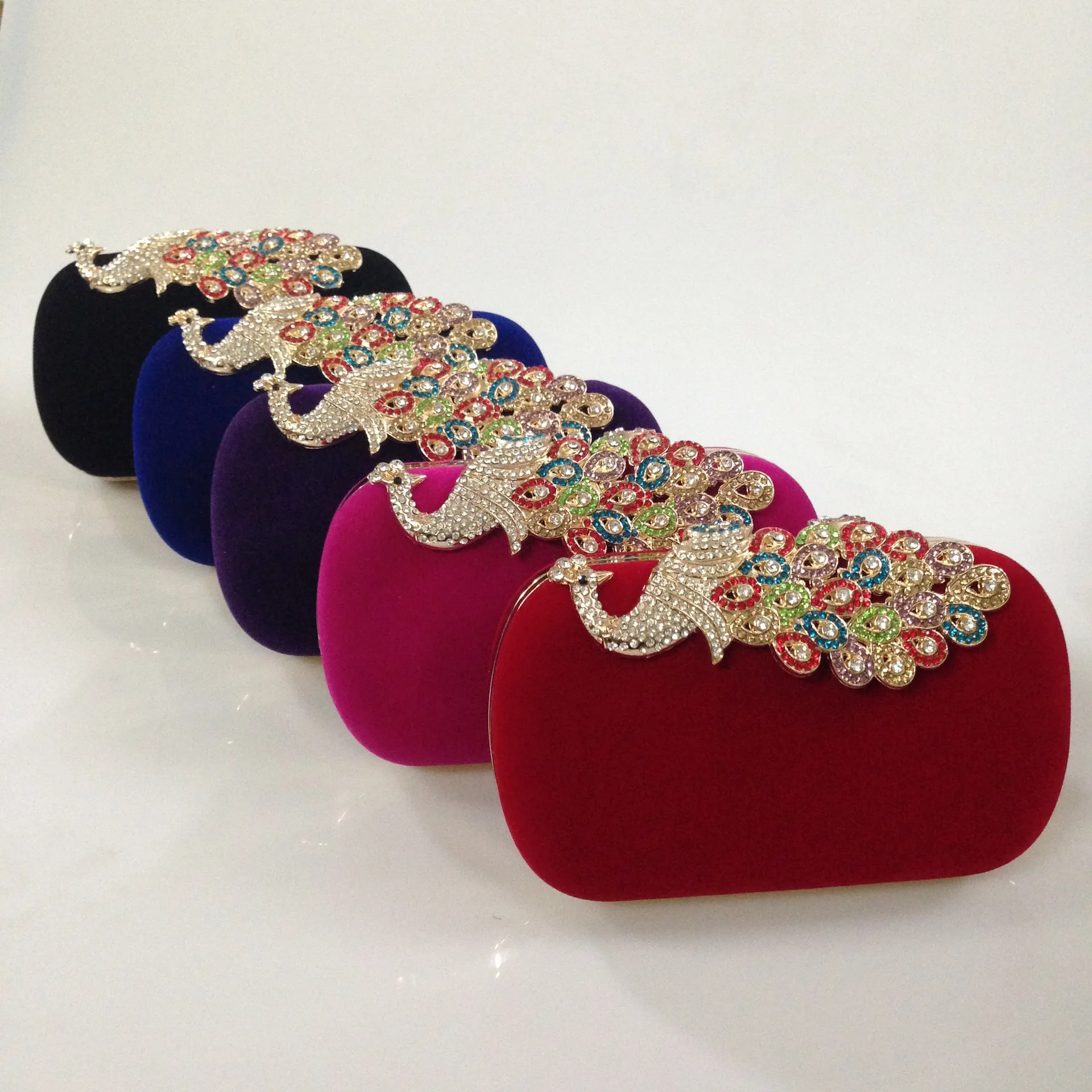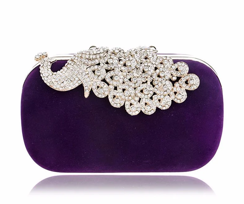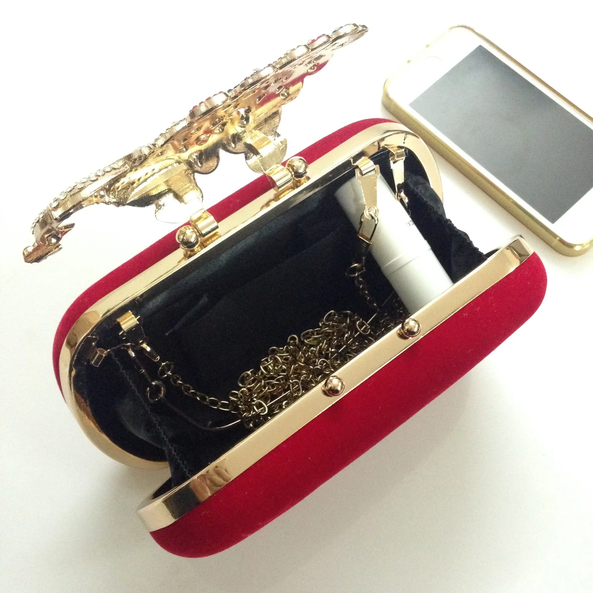 Velvet luxury women evening bags rhinestones flower small day clutch party diamonds lady dress shoulder chain handbags for purse