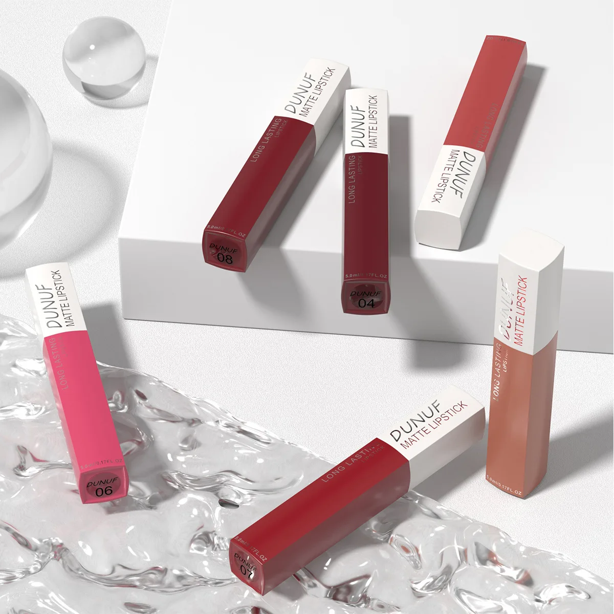 DUNUF 8colors Velvet Matte Lip Gloss Rich Color Waterproof Non-Stick Cup Lip Glaze Moisturizing Long Lasting Liquid Lipstick