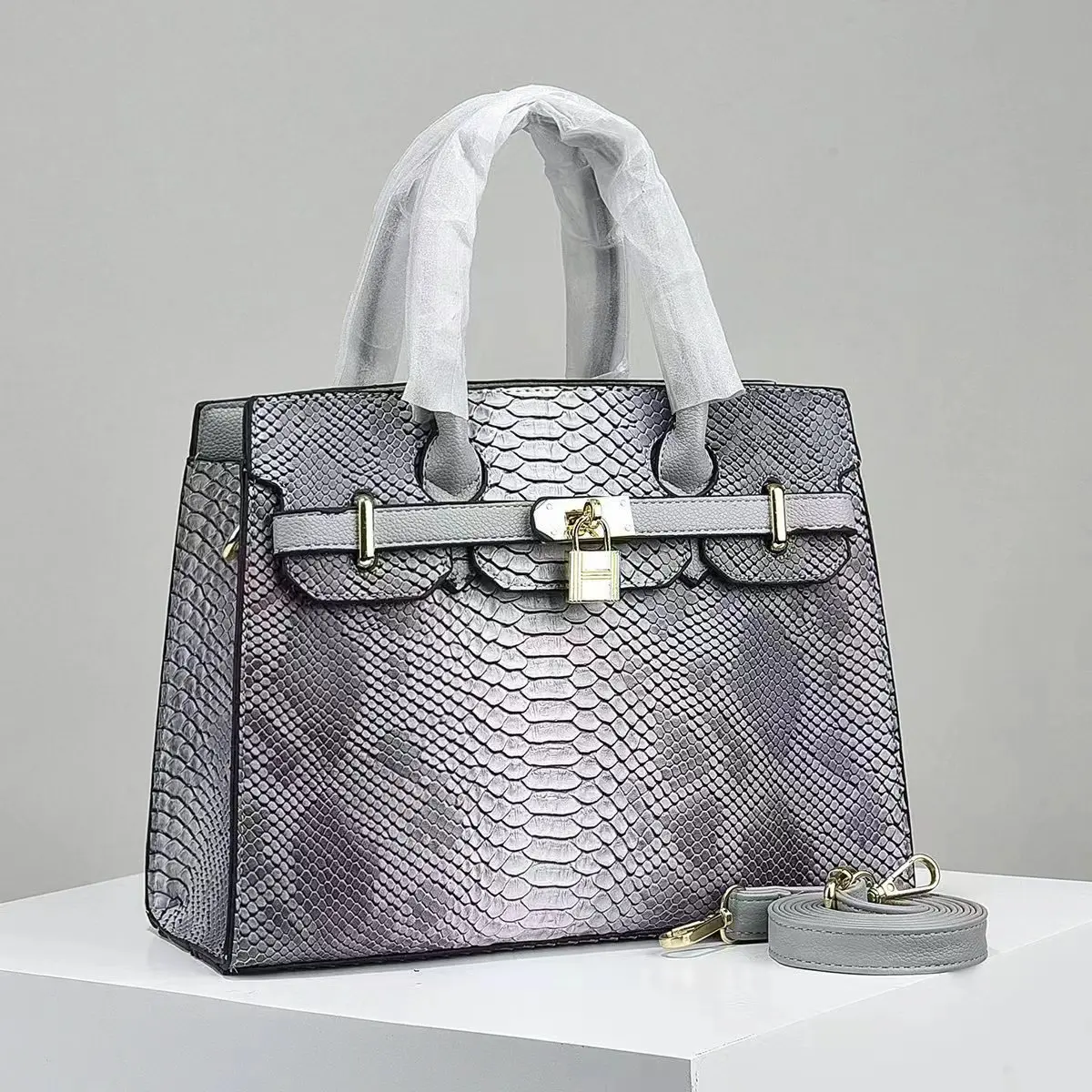 Versatile bag fashionable large-capacity handbag women's shoulder bag bright leather stone pattern