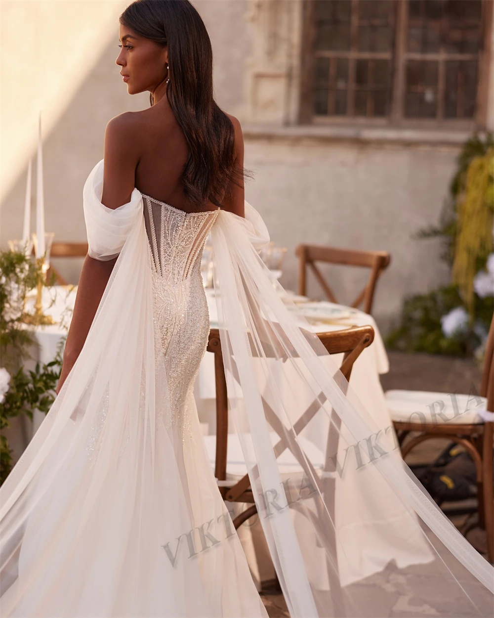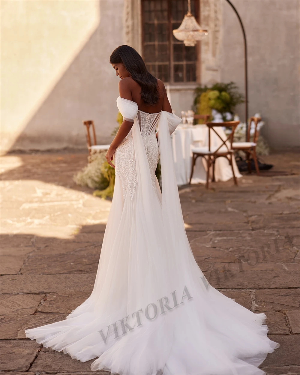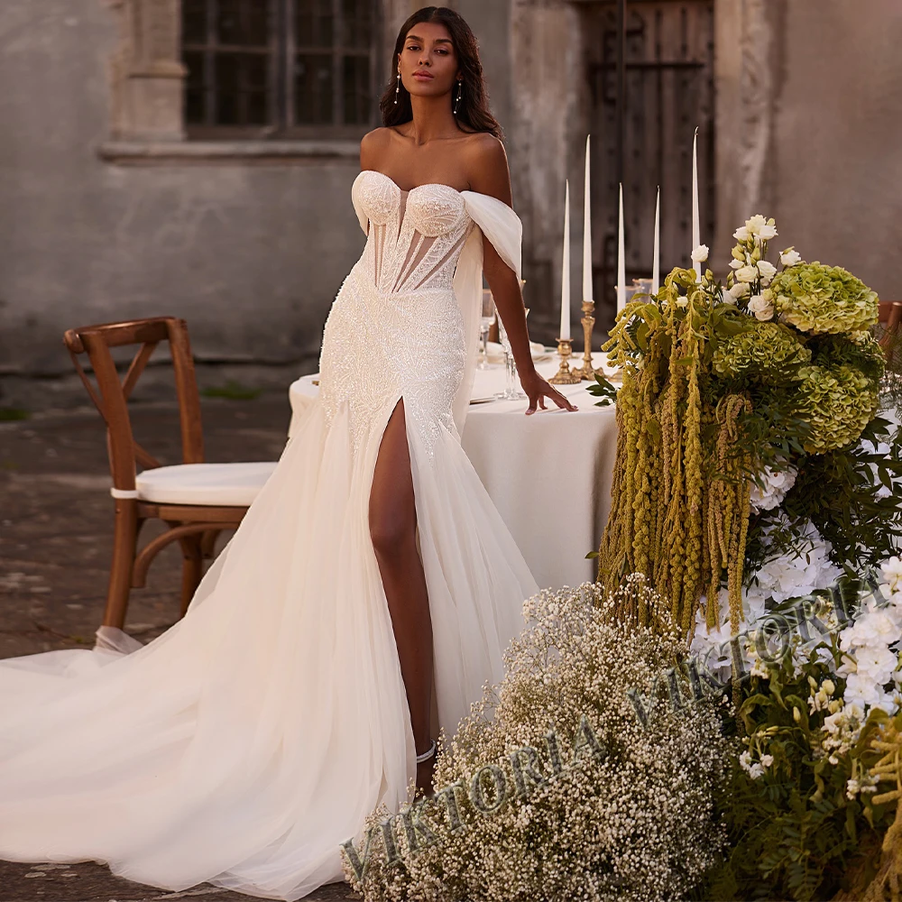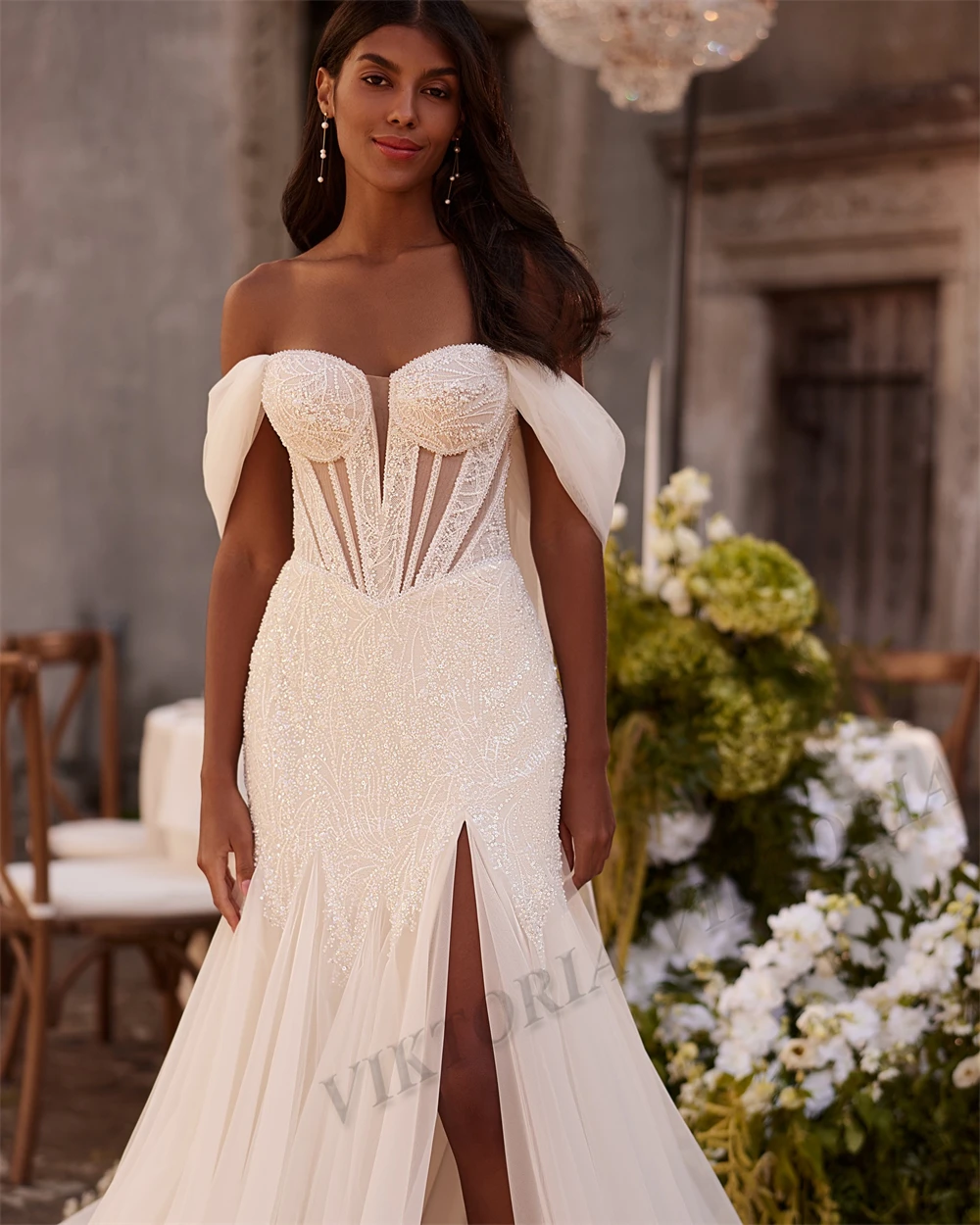 VIKTORIA Luxury Mermaid Wedding Dress For Woman Bride Off the Shoulder Slit Beaded Vestido De Casamento Personalized Customized