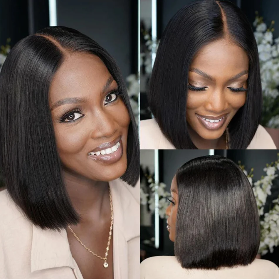 Wear And Go Glueless Bone Straight Bob Wig Lace Frontal 100% Human Hair For Women Bob Wig On Clearance Sale Preplucked Ready Go