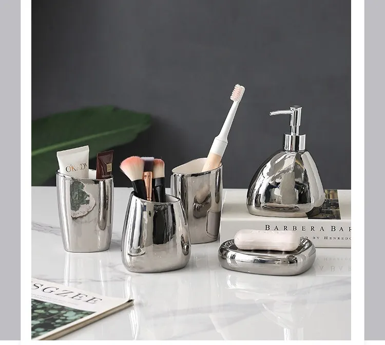 White Ceramic Bathroom Set Wash Set Toiletries Accessories Bathroom 5-piece Set Lotion Bottle Mouth Cup Soap Dish Dispenser