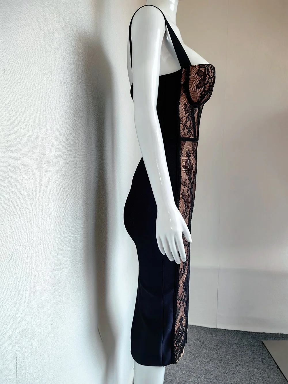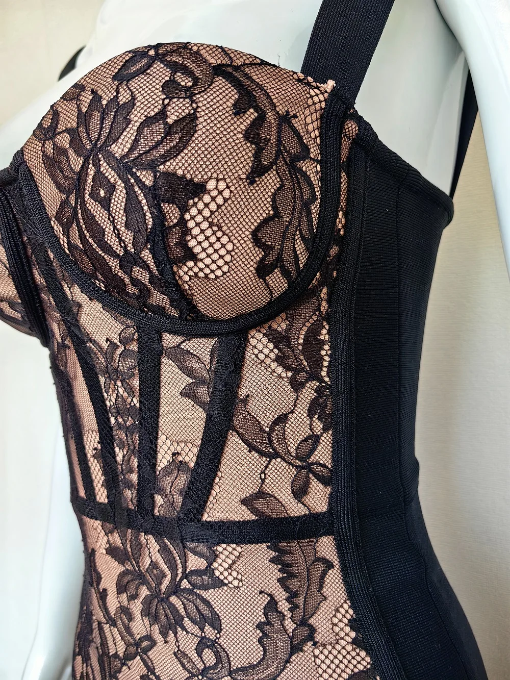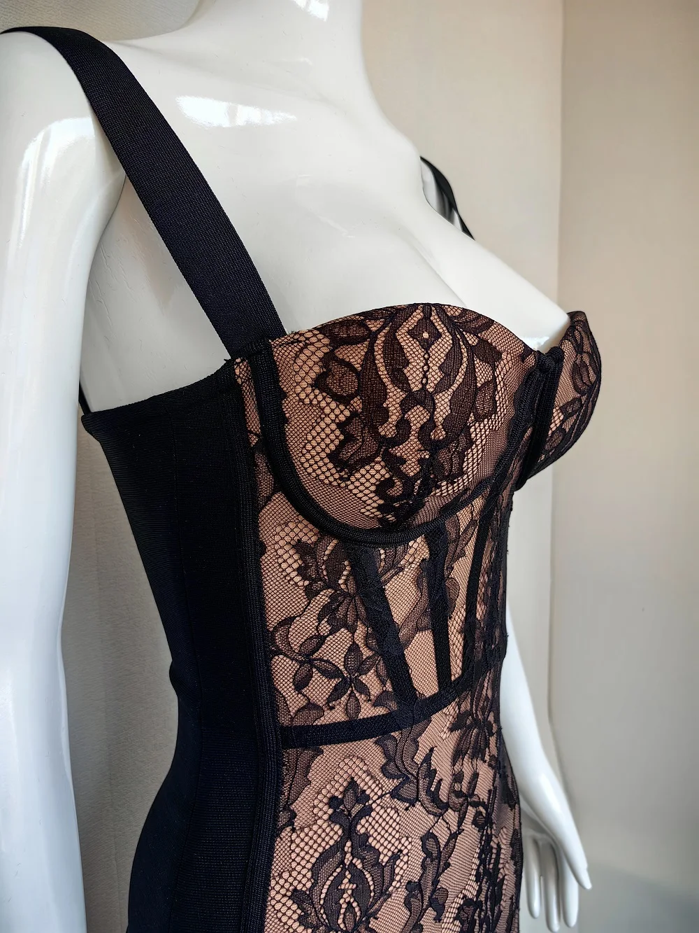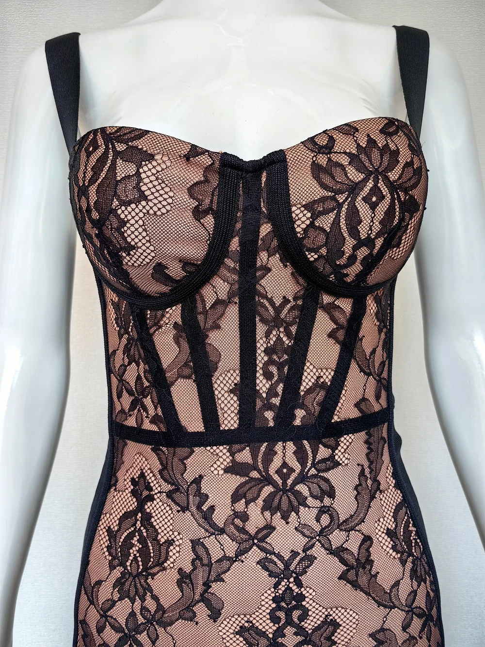 WillBeNice Lace Bustier Sexy Black Bandage Women Evening Dress Summer Party Vintage Gauze Vestido Patchwork Dress Bodycon XL