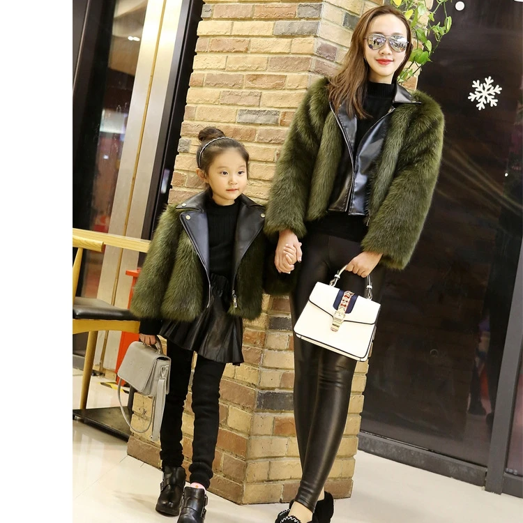 Winter Mother Daughter Faux Fur Leather Coat Children's Artificial Fox Fur Girls Jacket Kids Elegant Boutique Clothes TZ422