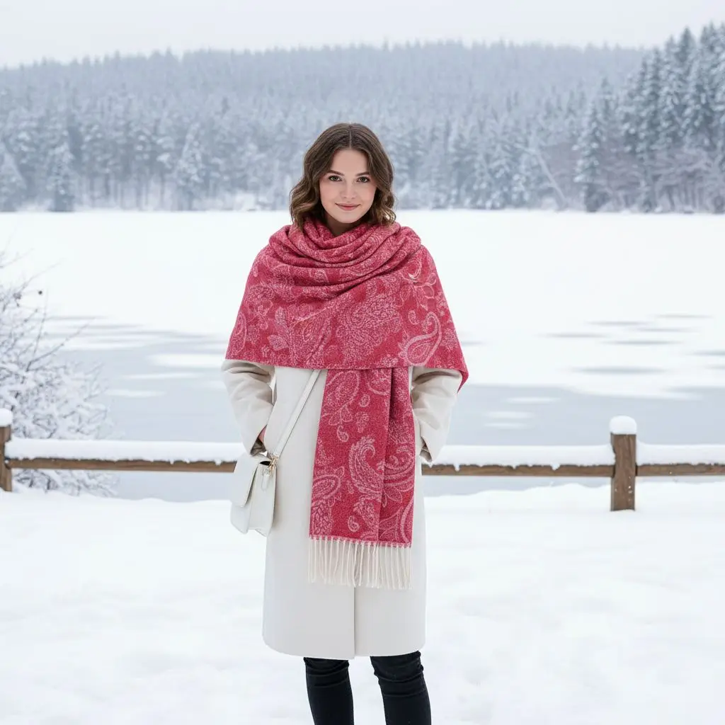 Winter New Brand National Style Paisley Design Thick Pashmina Warm Shawl Long Tassel Print Scarf Women Keep Warm Poncho Stoles