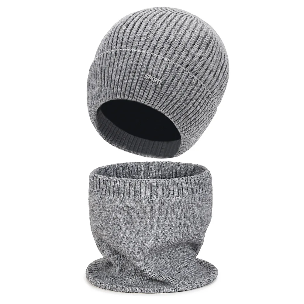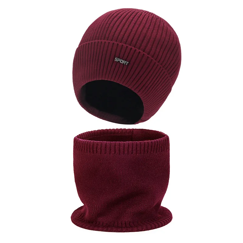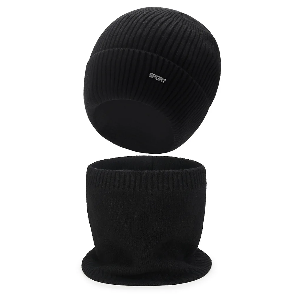 Winter New Solid Color Men's And Women's Knitted Hats+Ear Protection Scarf Set Warm Hat Scarf,Outdoor Warm Hat Warm