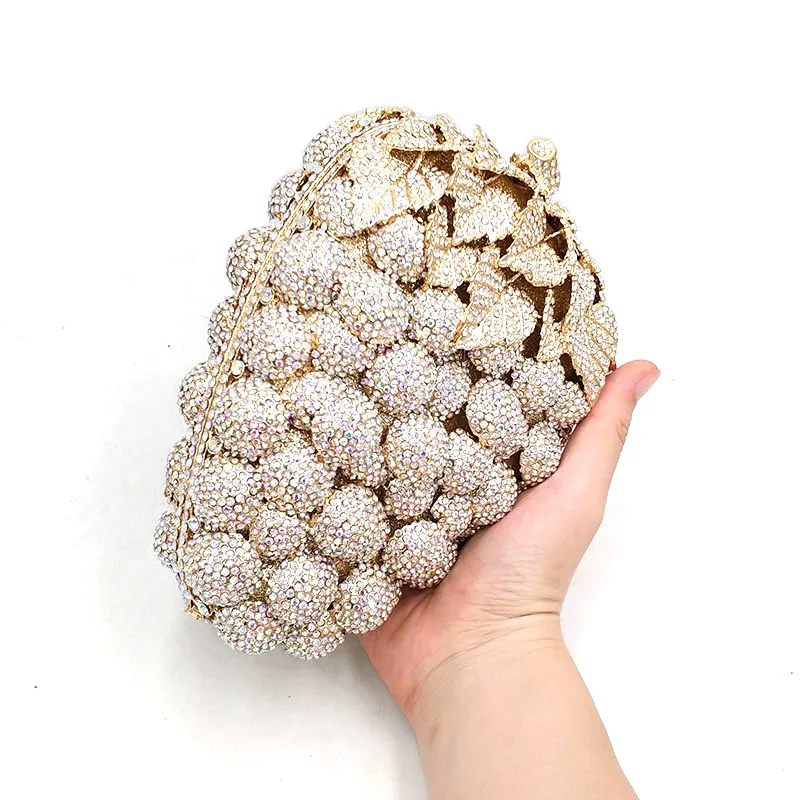 Women evening party handbag diamonds luxury clutches ladies crystal purses prom grape fruit bridal wedding party purse