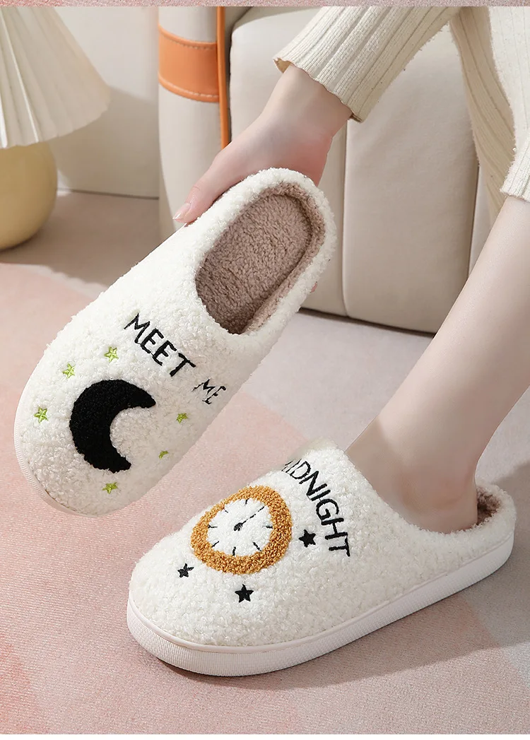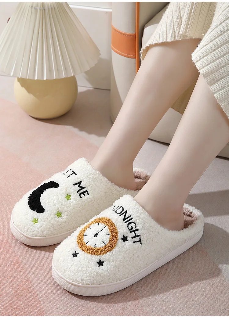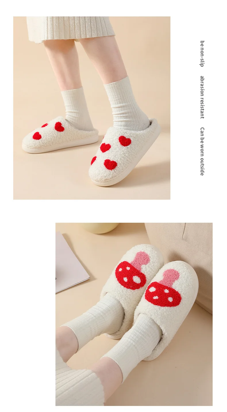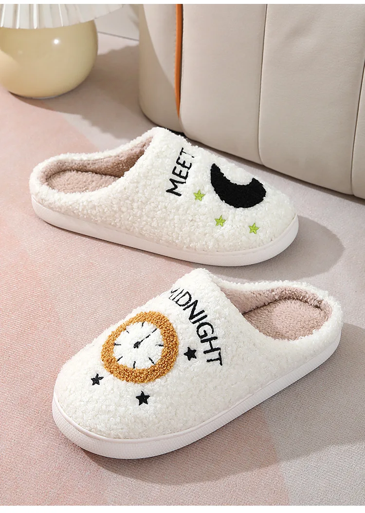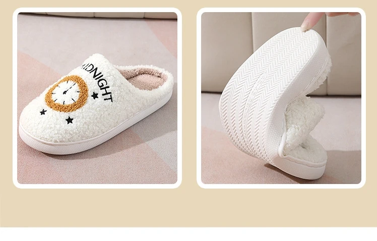Women Fluffy House Slippers Women Men Lovely Cartoon Christmas Indoor House Slides Shoes Cozy Couples Plush Cotton Flat Shoes