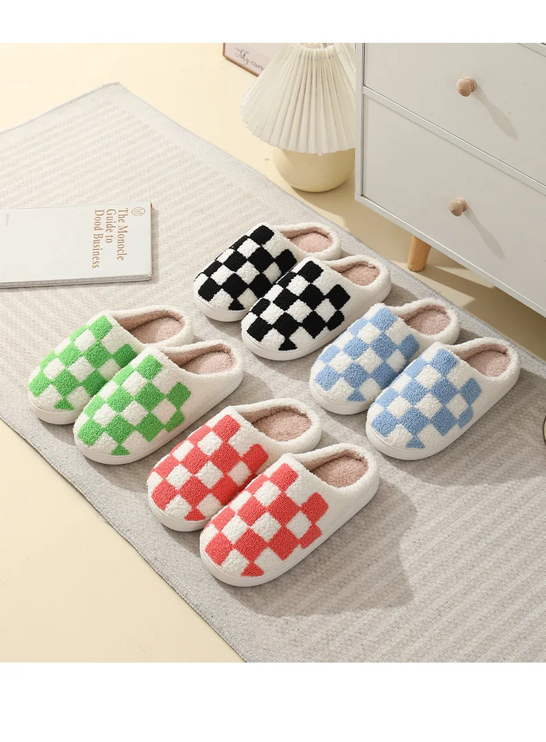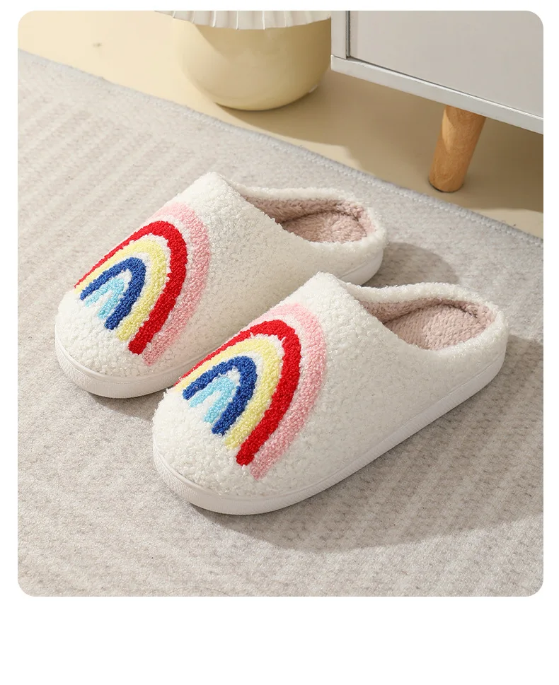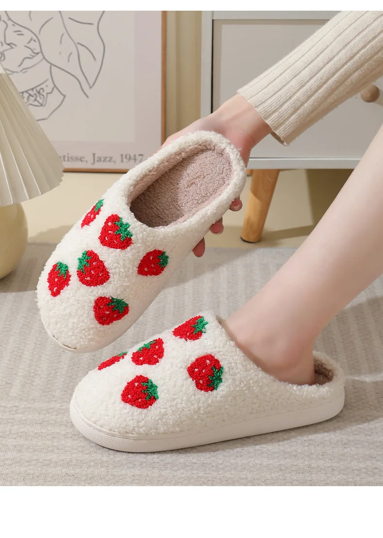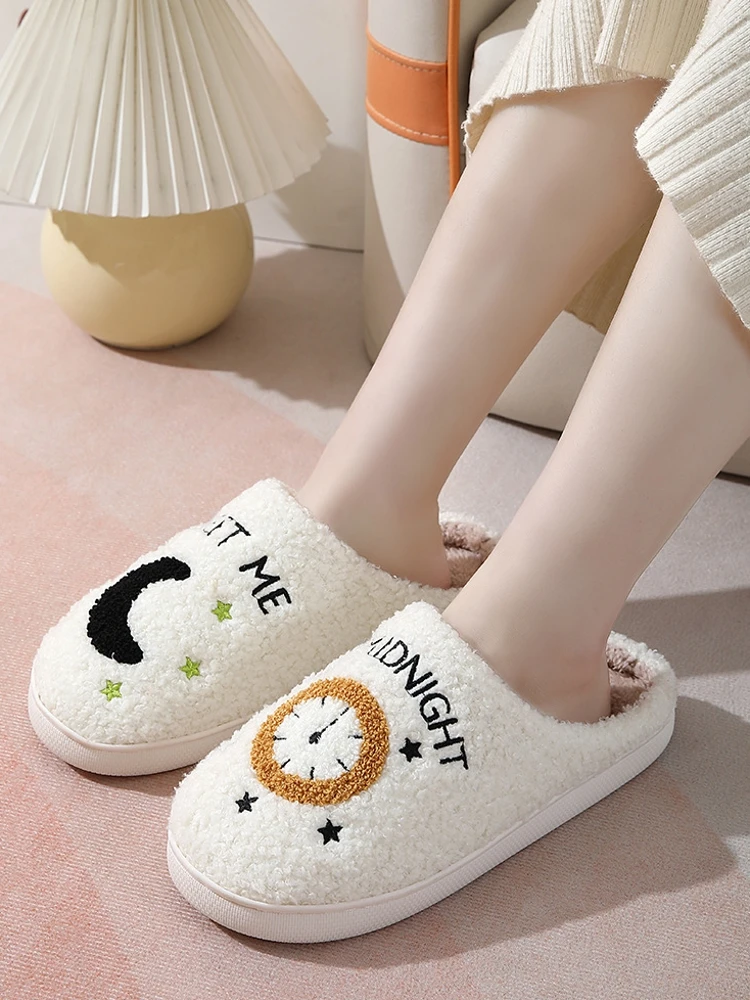 Women Fluffy House Slippers Women Men Lovely Cartoon Christmas Indoor House Slides Shoes Cozy Couples Plush Cotton Flat Shoes
