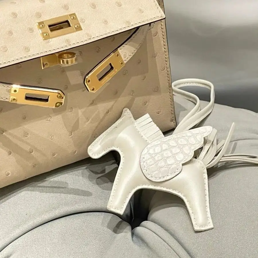 Women Genuine Leather Charms Bag Pendant KeyChain Handmade Pony Carriage Tasted Cute Animal Ornament Accessories Decoration Gift