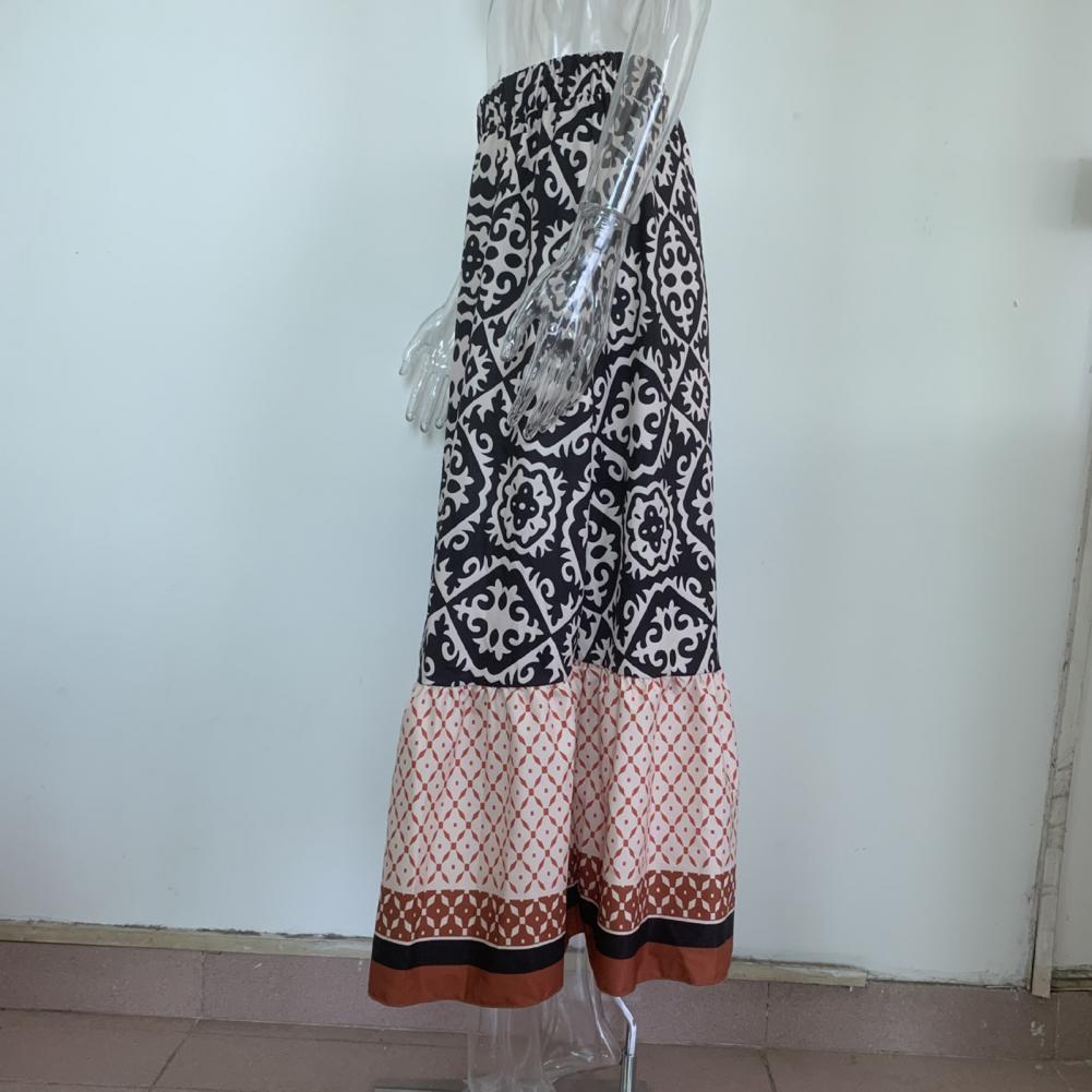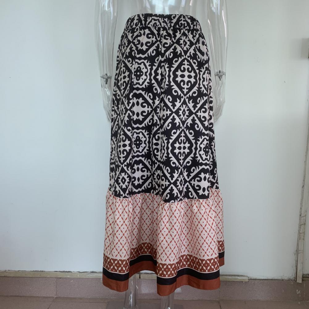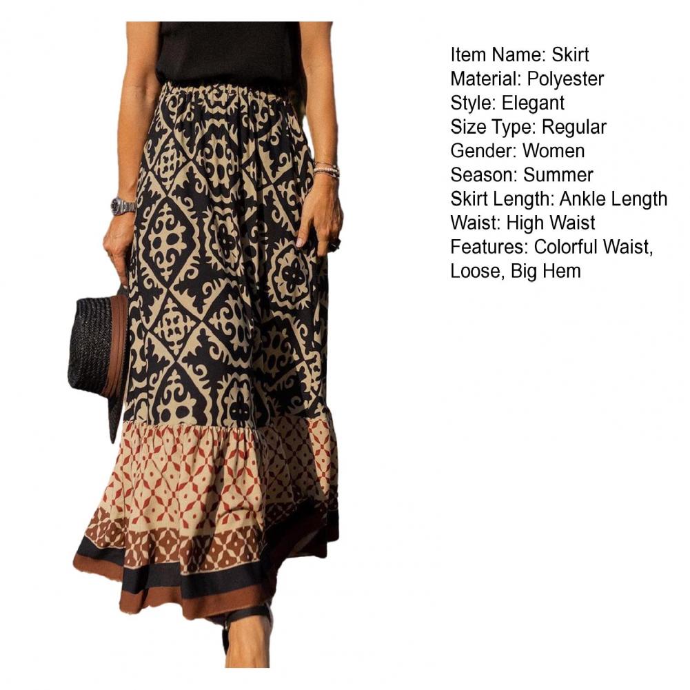 Women Maxi Skirt Vintage Breathable Large Hem High Waist Patchwork Dress Up Colorful Print Elastic Waist Lady Skirt Female Clothes