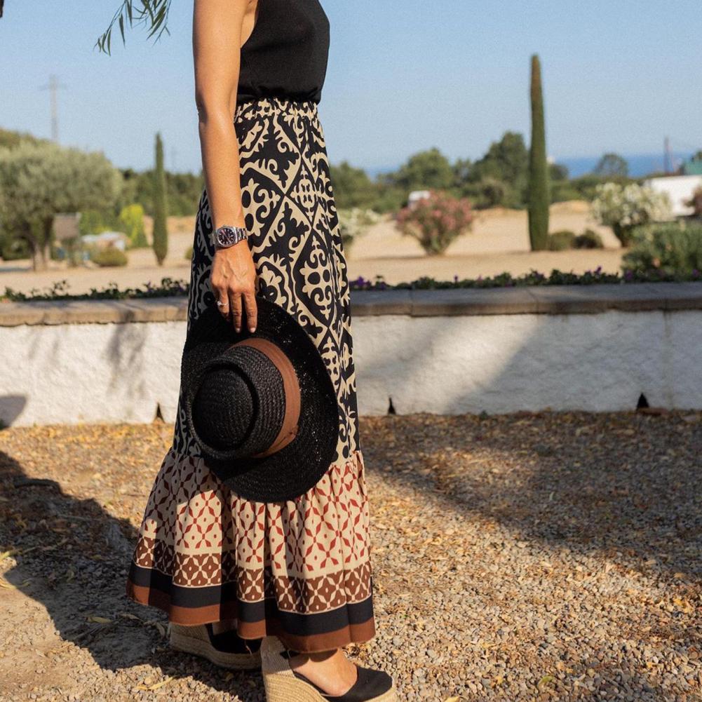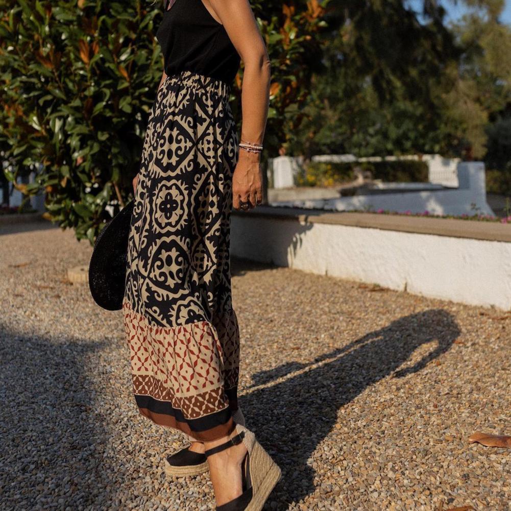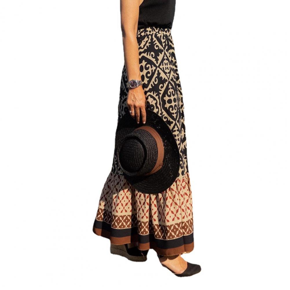 Women Maxi Skirt Vintage Lady Skirt Large Hem High Waist Patchwork Women Summer Skirt Elastic Waist Lady Skirt Female Clothes