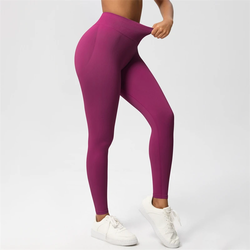 Women Seamless Scrunch Butt Leggings with Ribbed Waistband