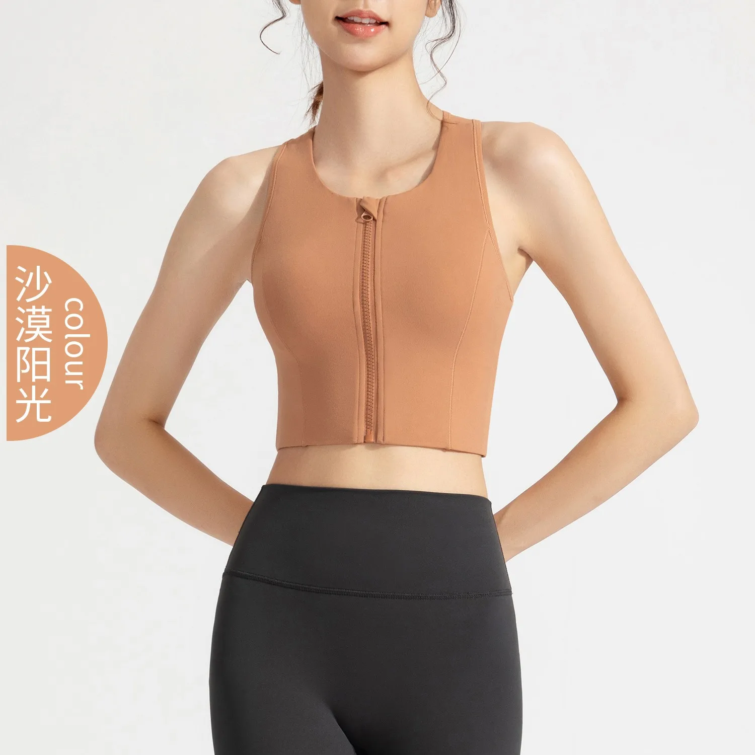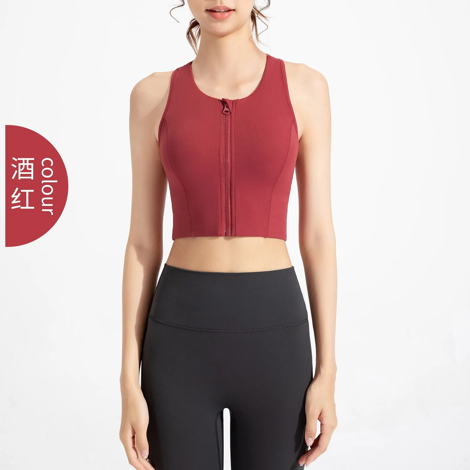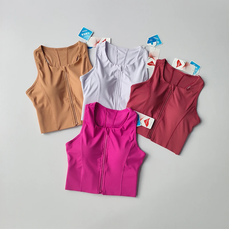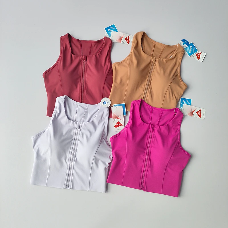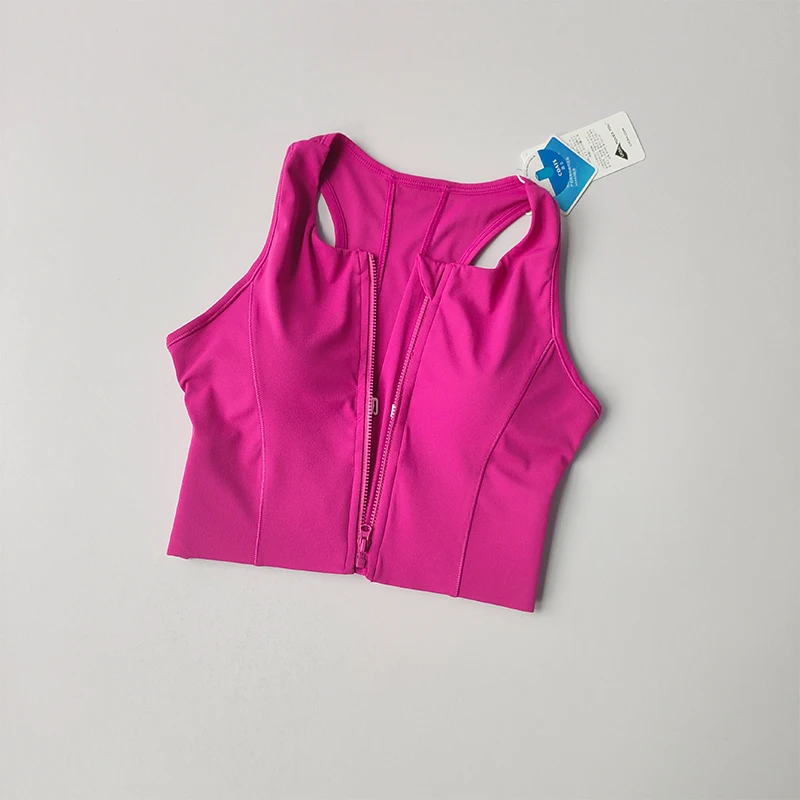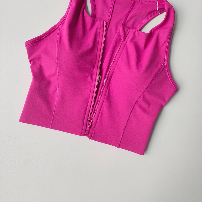 Women Shockproof Running Bra High Impact Sports Bra Vest Fitness Yoga Bra Fixed Pad Running Bra Front Zipper Sports Underwear